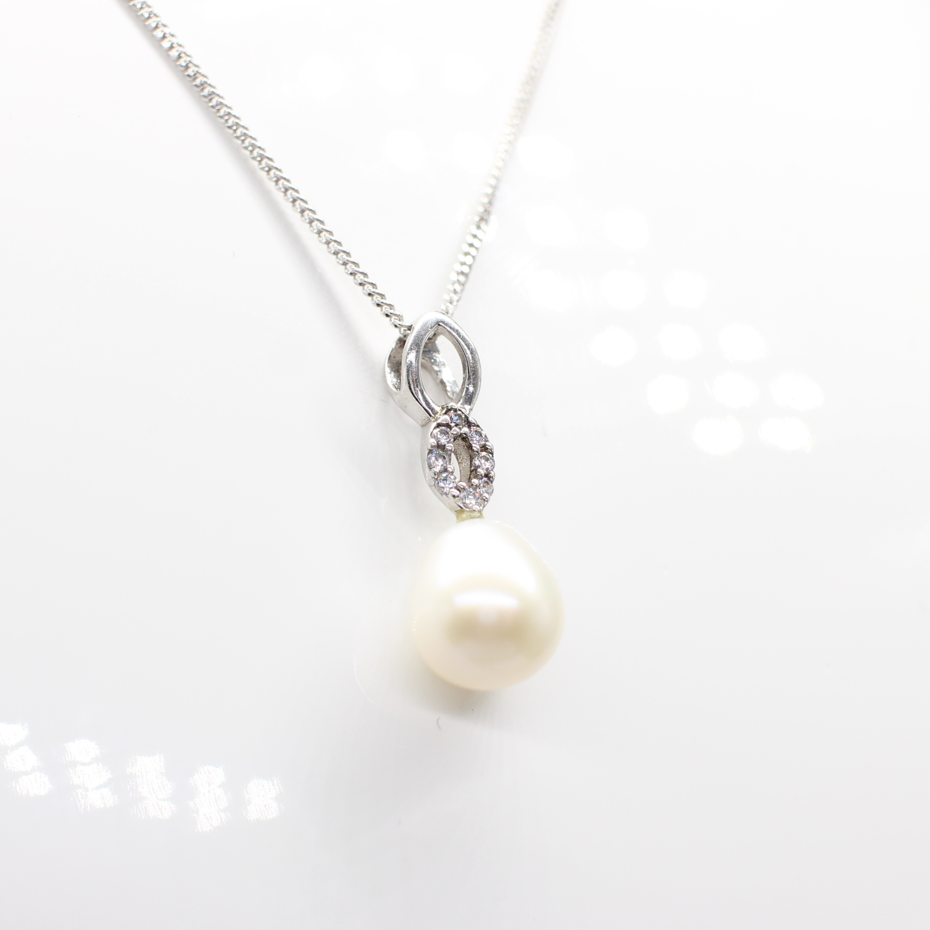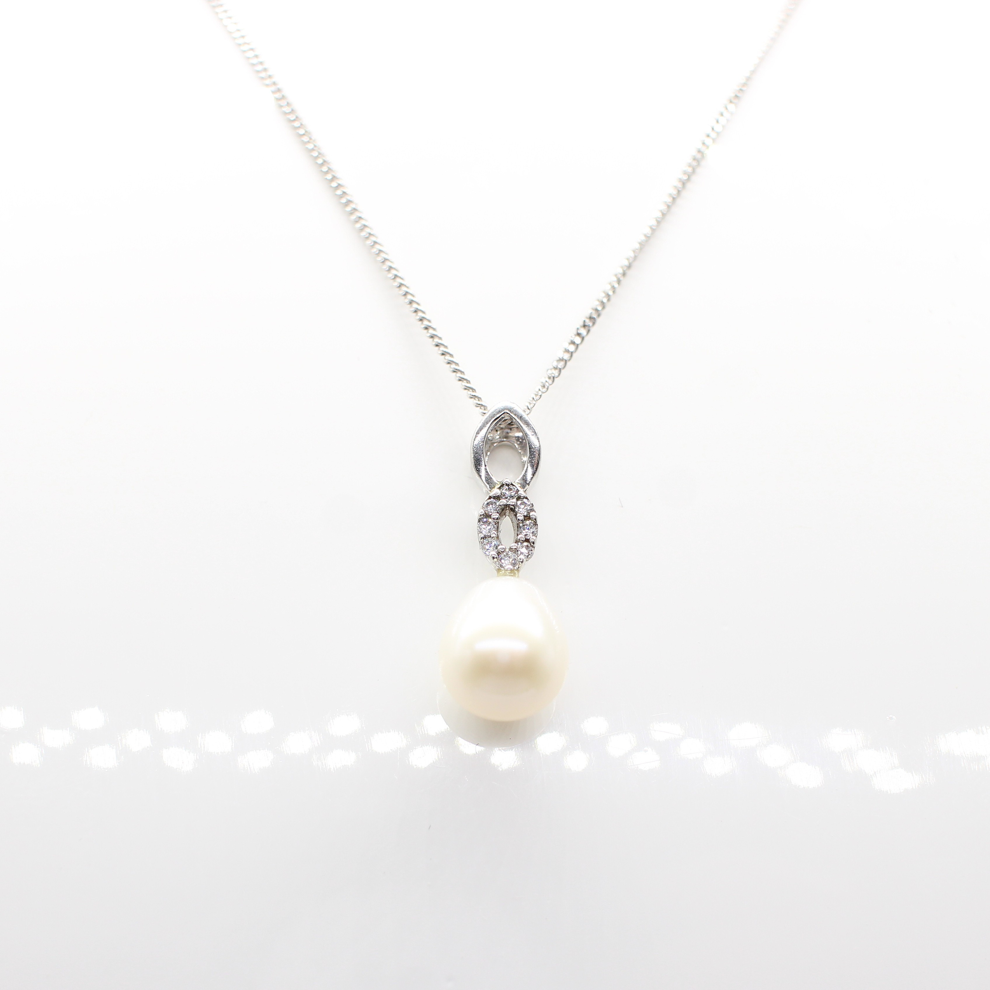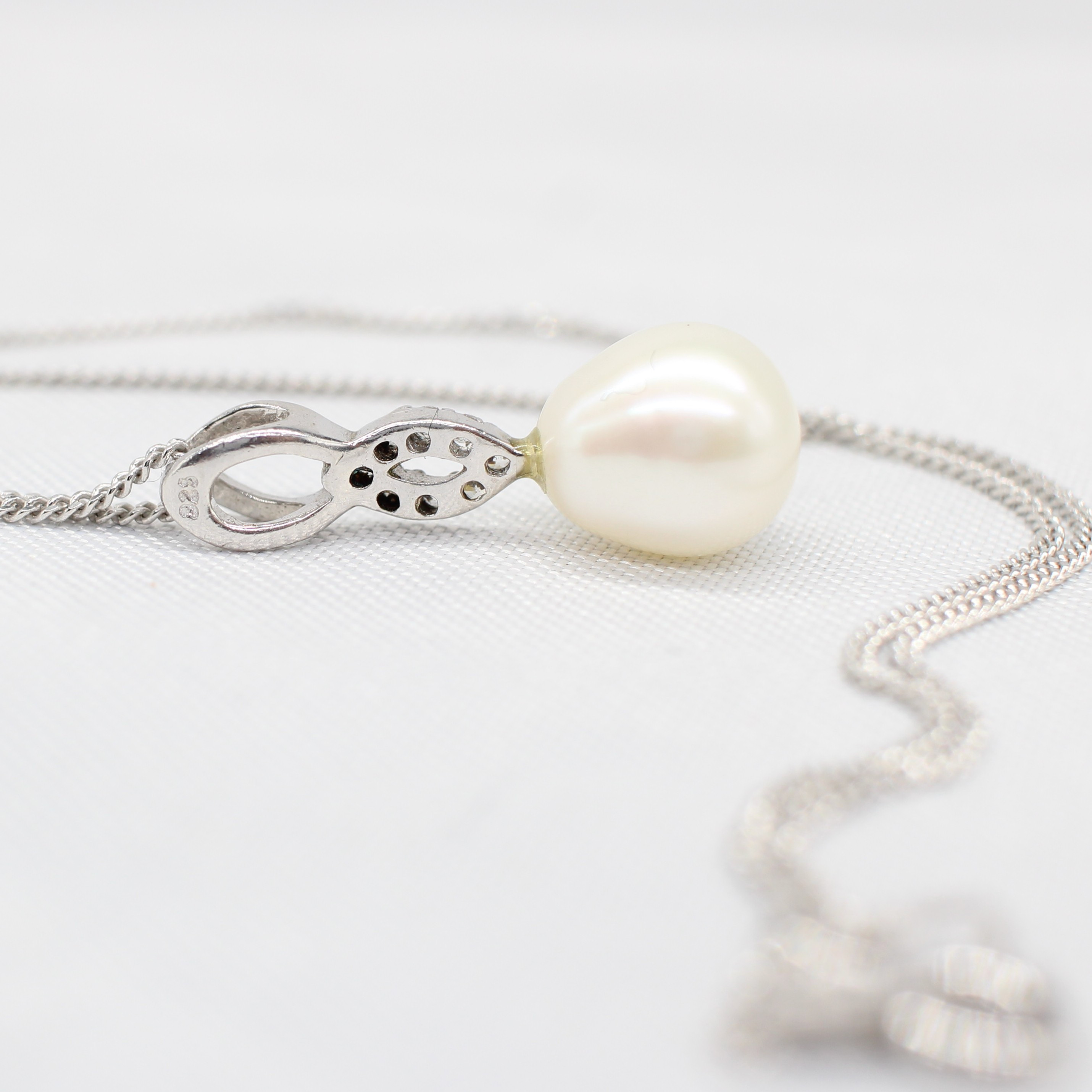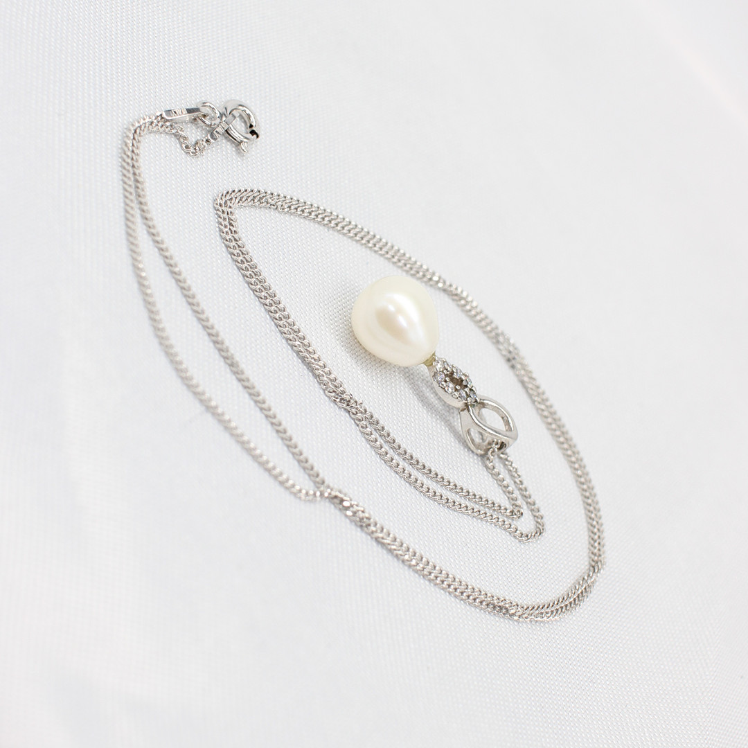 4953171. DYRKET PERLE & SØLV HALSKÆDE.