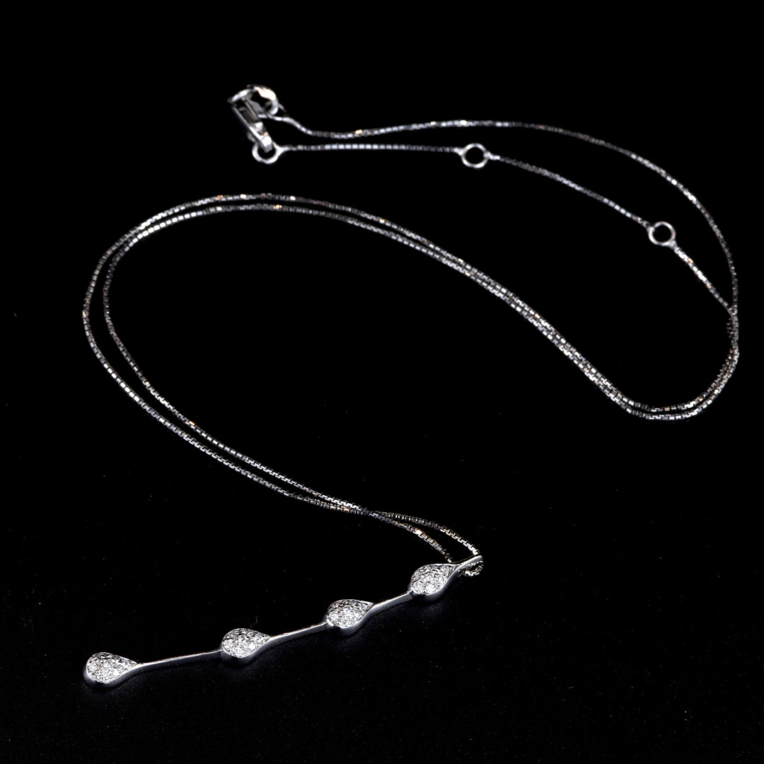 4953241. 18 KT. HVIDGULD HALSKÆDE BESAT MED DIAMANTER.