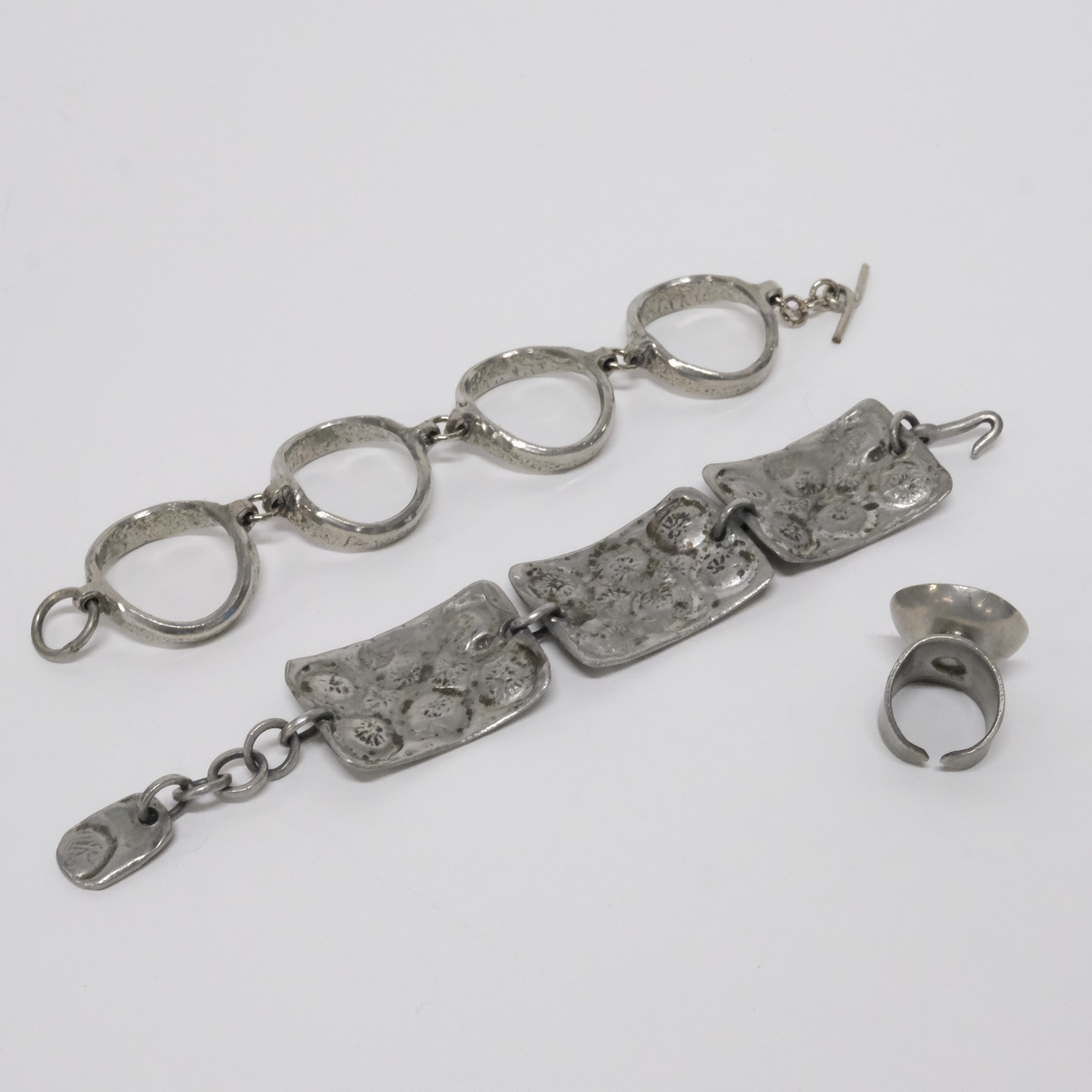 4953305. TO ARMBÅND OG EN RING, TIN.