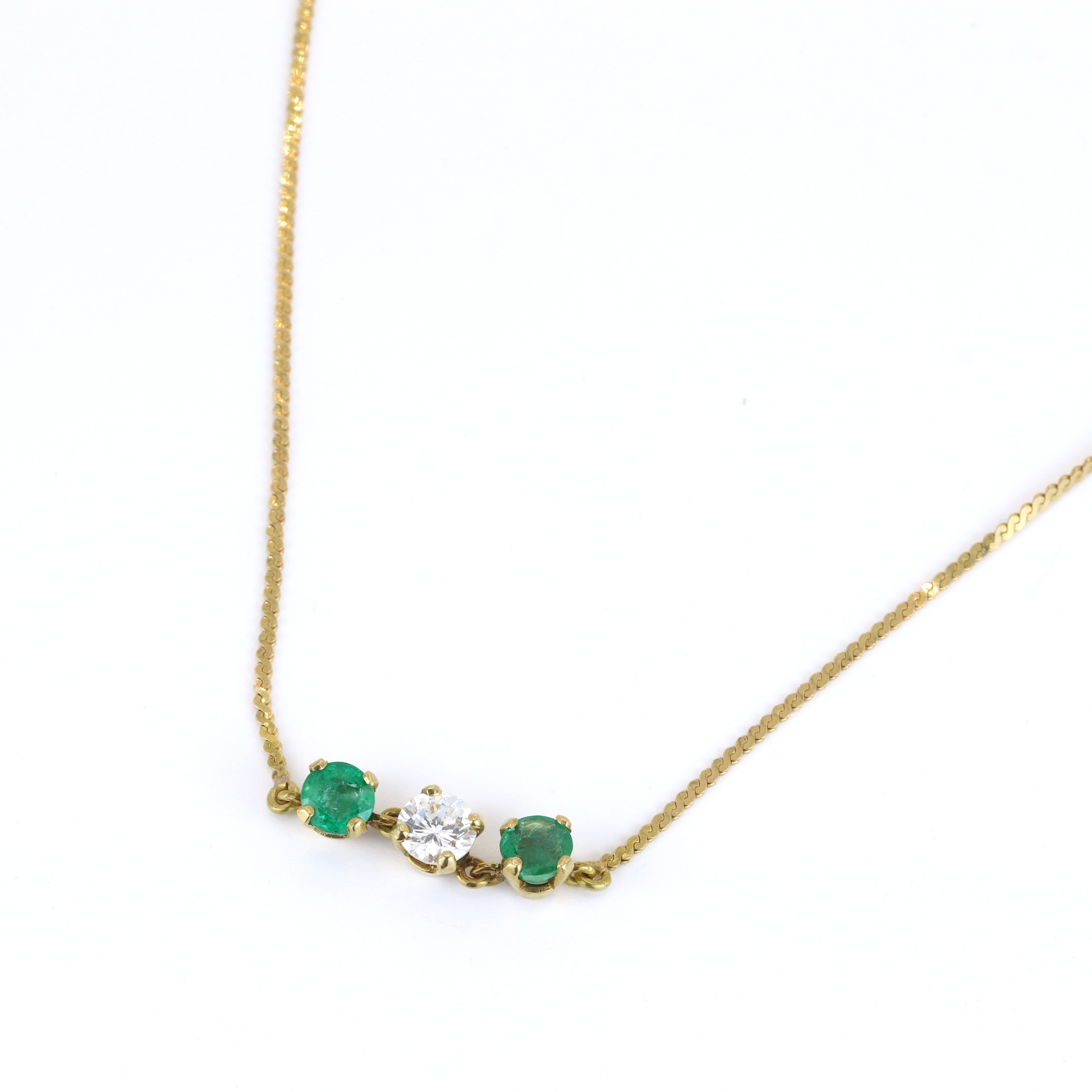 4953396. 18KT GULD SMARAGD & DIAMANT SÆT HALSKÆDE.