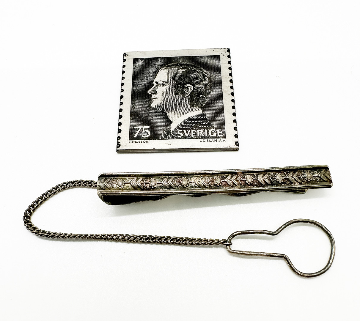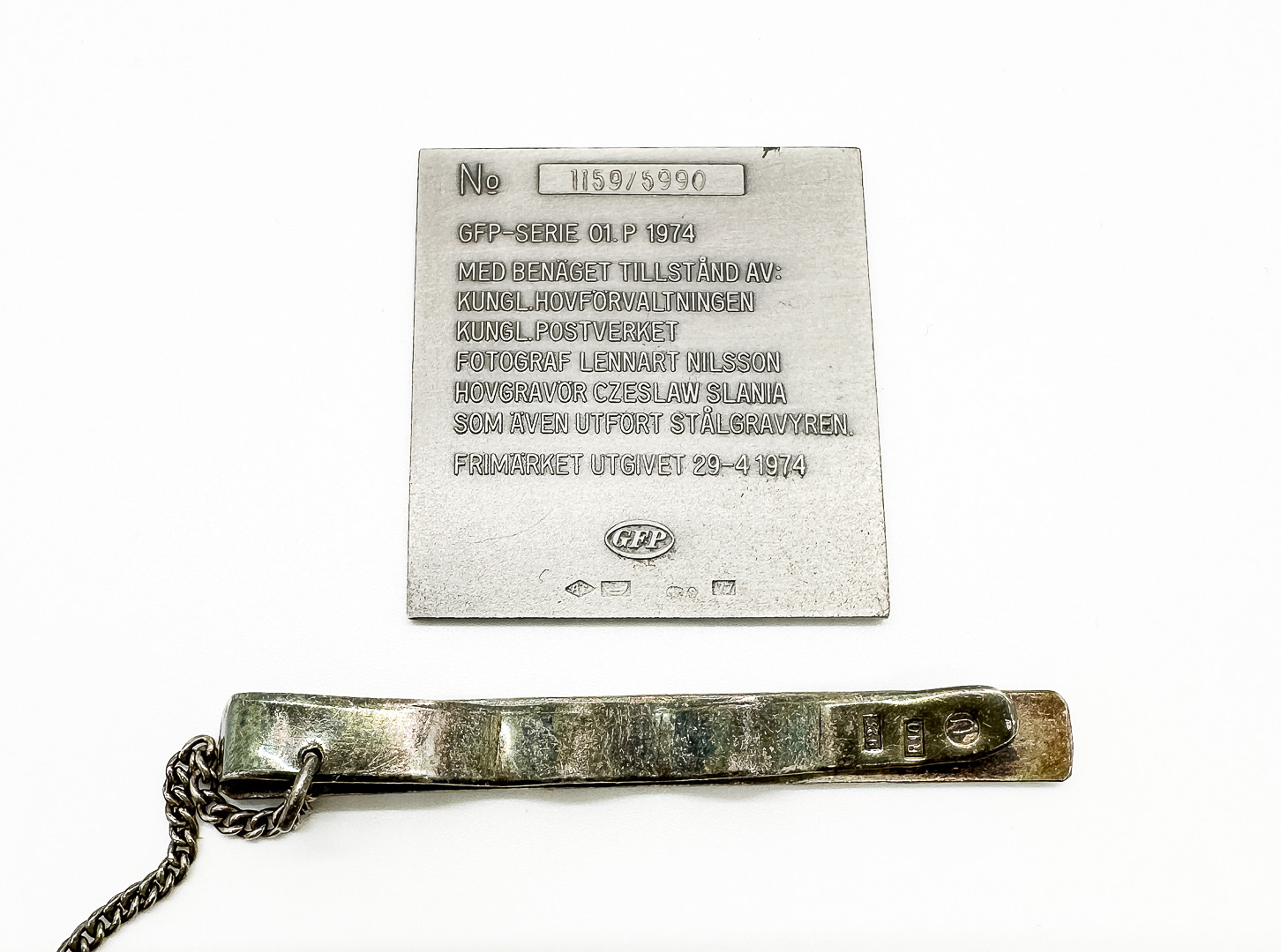 4955622. BINDESTIFT & PLAQUE, herunder sterlingsølv.