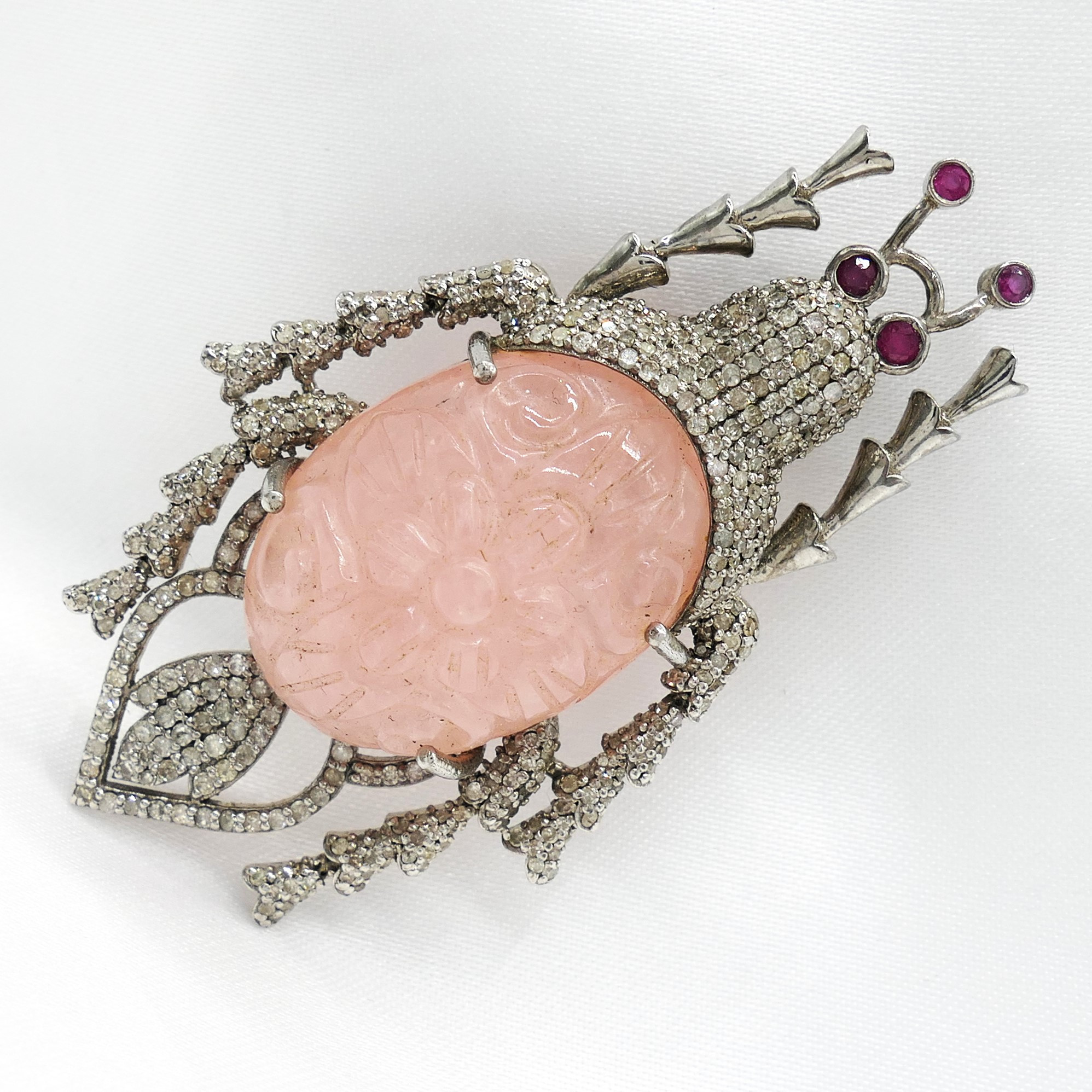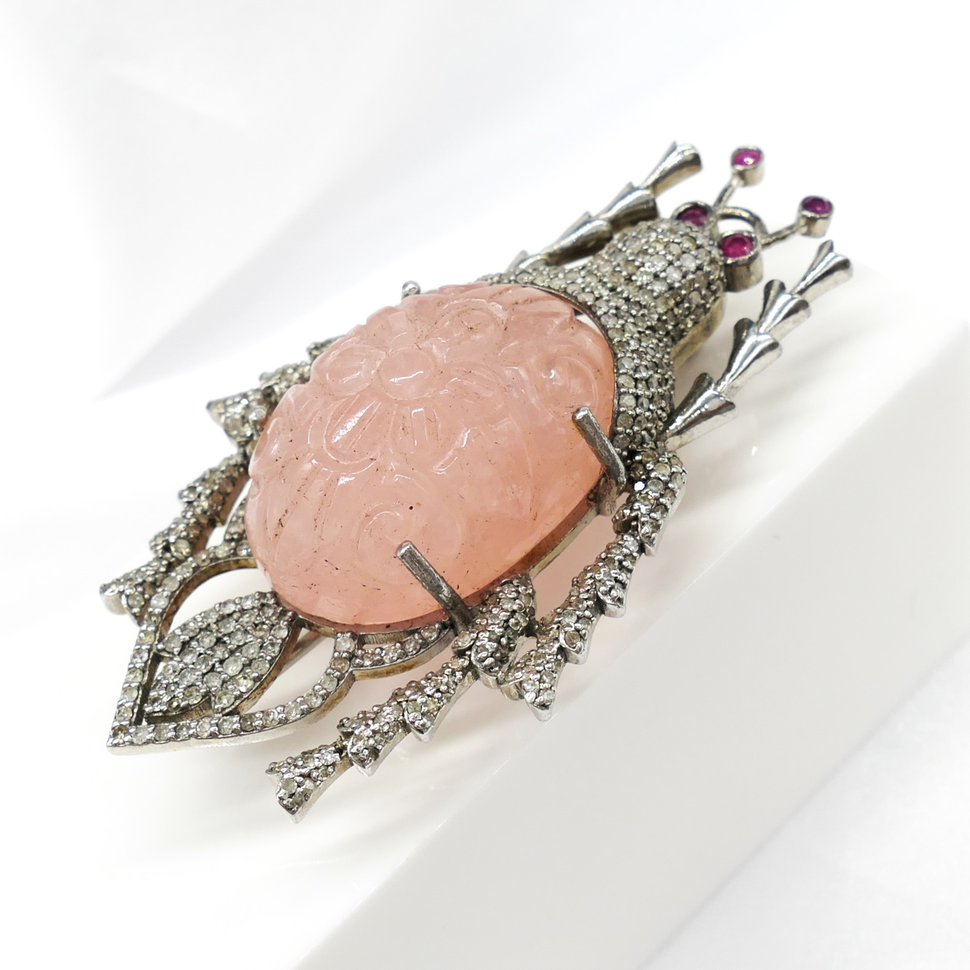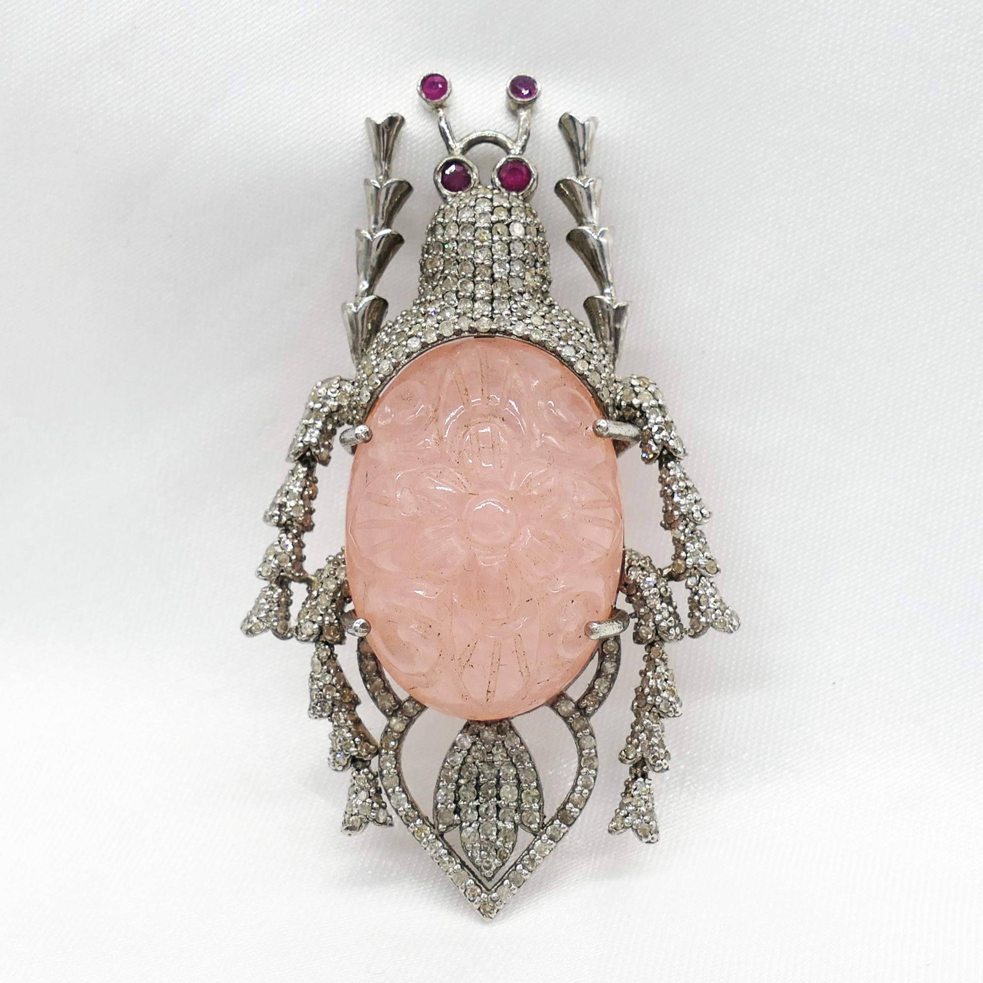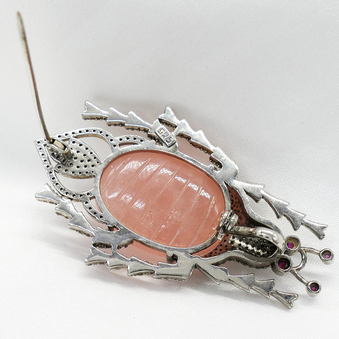 4955763. BEETLE BROCHE med udskåret morganit.