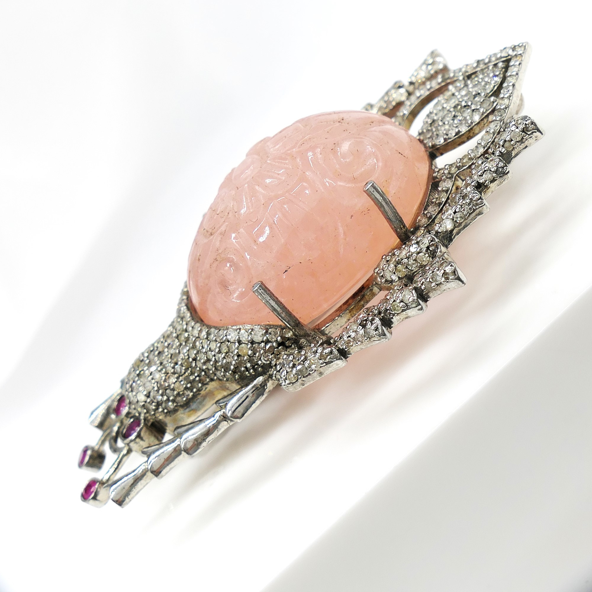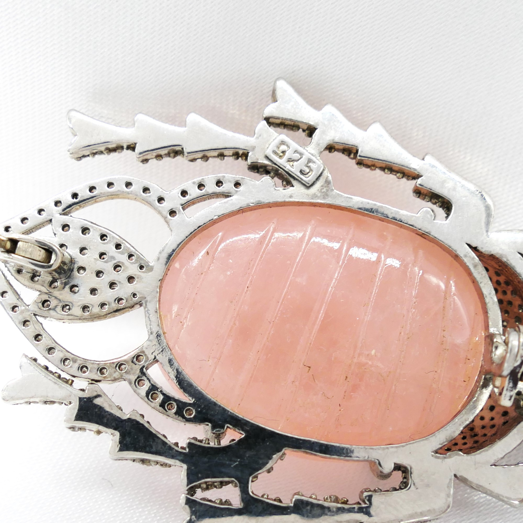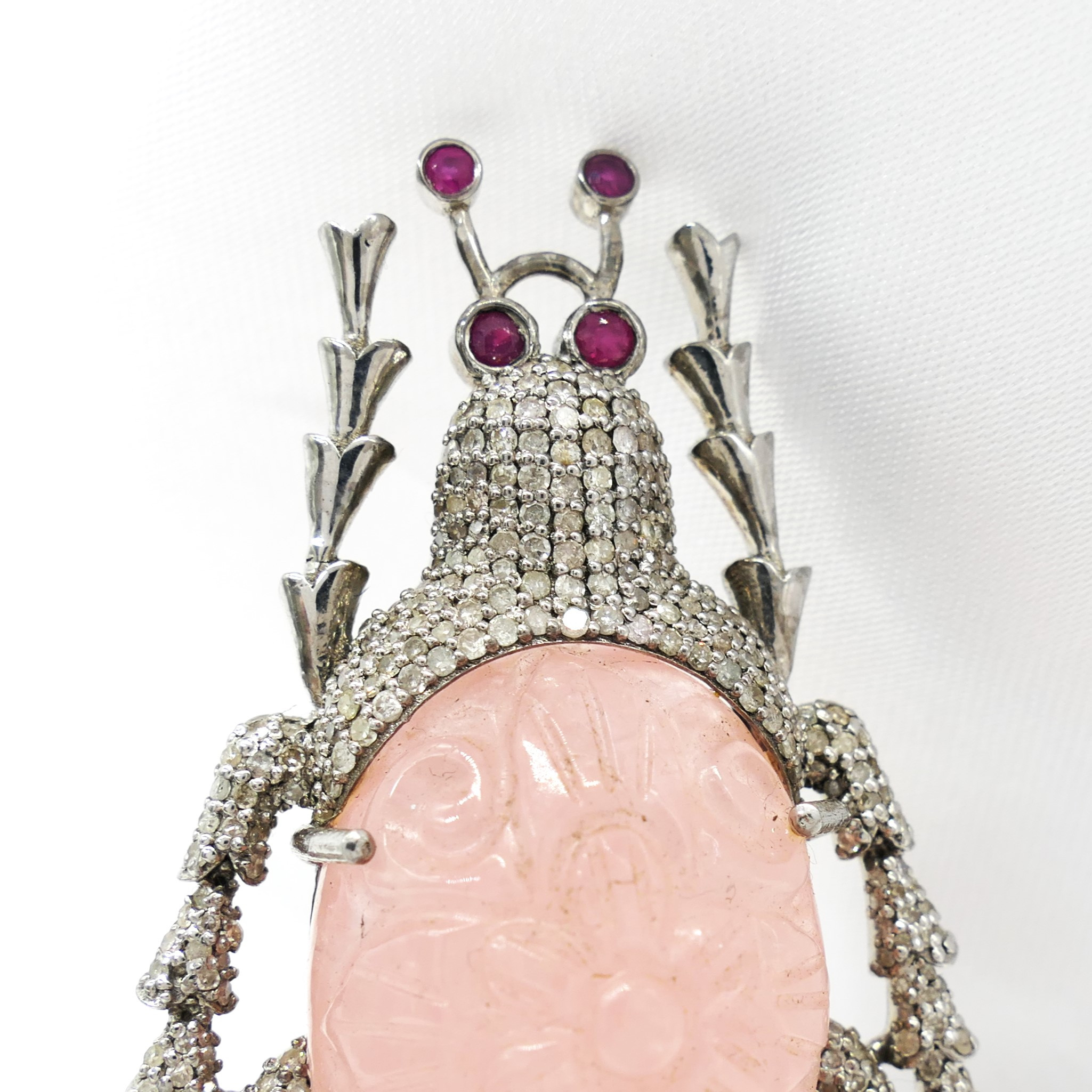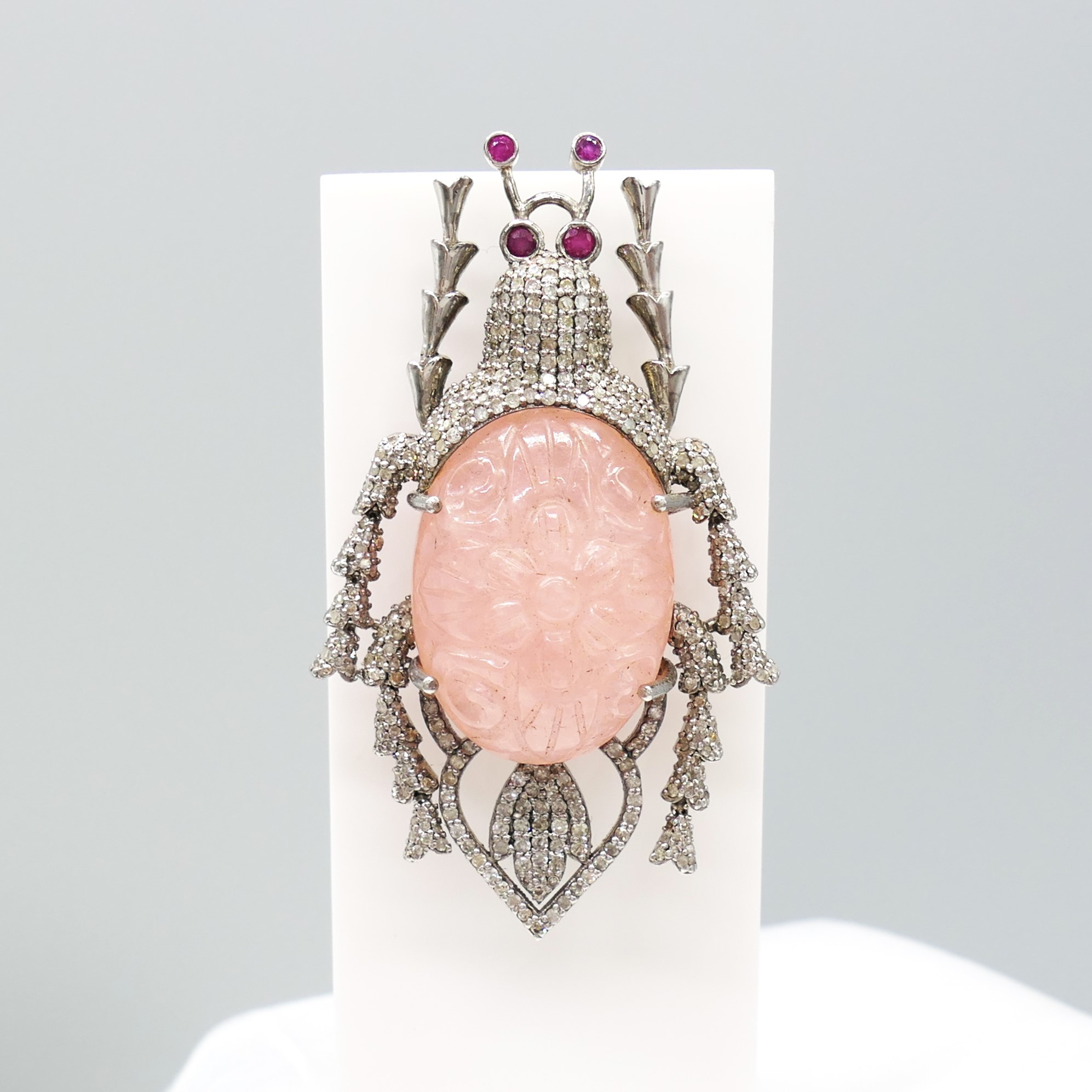 4955763. BEETLE BROCHE med udskåret morganit.