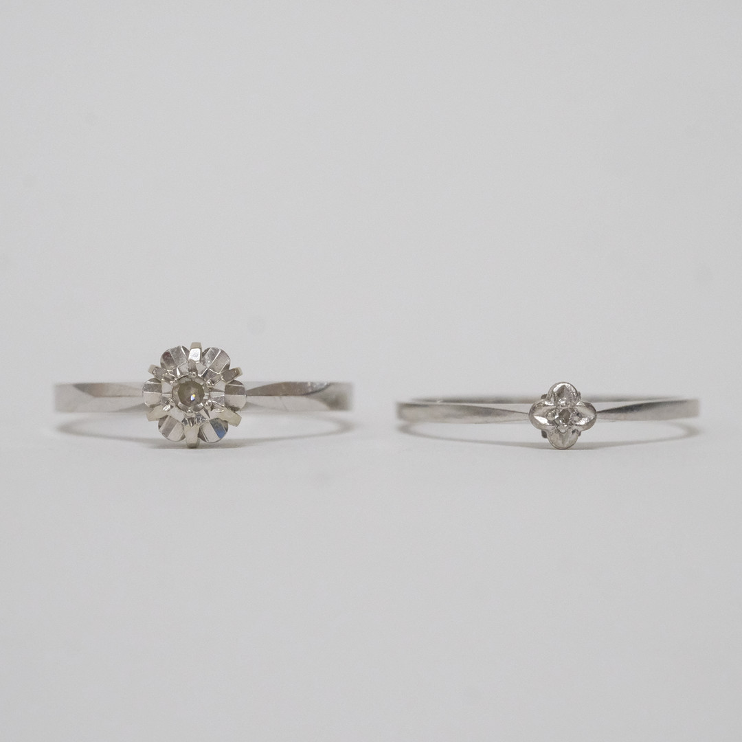 4956552. RING MED DIAMANTER, 18 KT HVIDGULD, TO STYKKER.