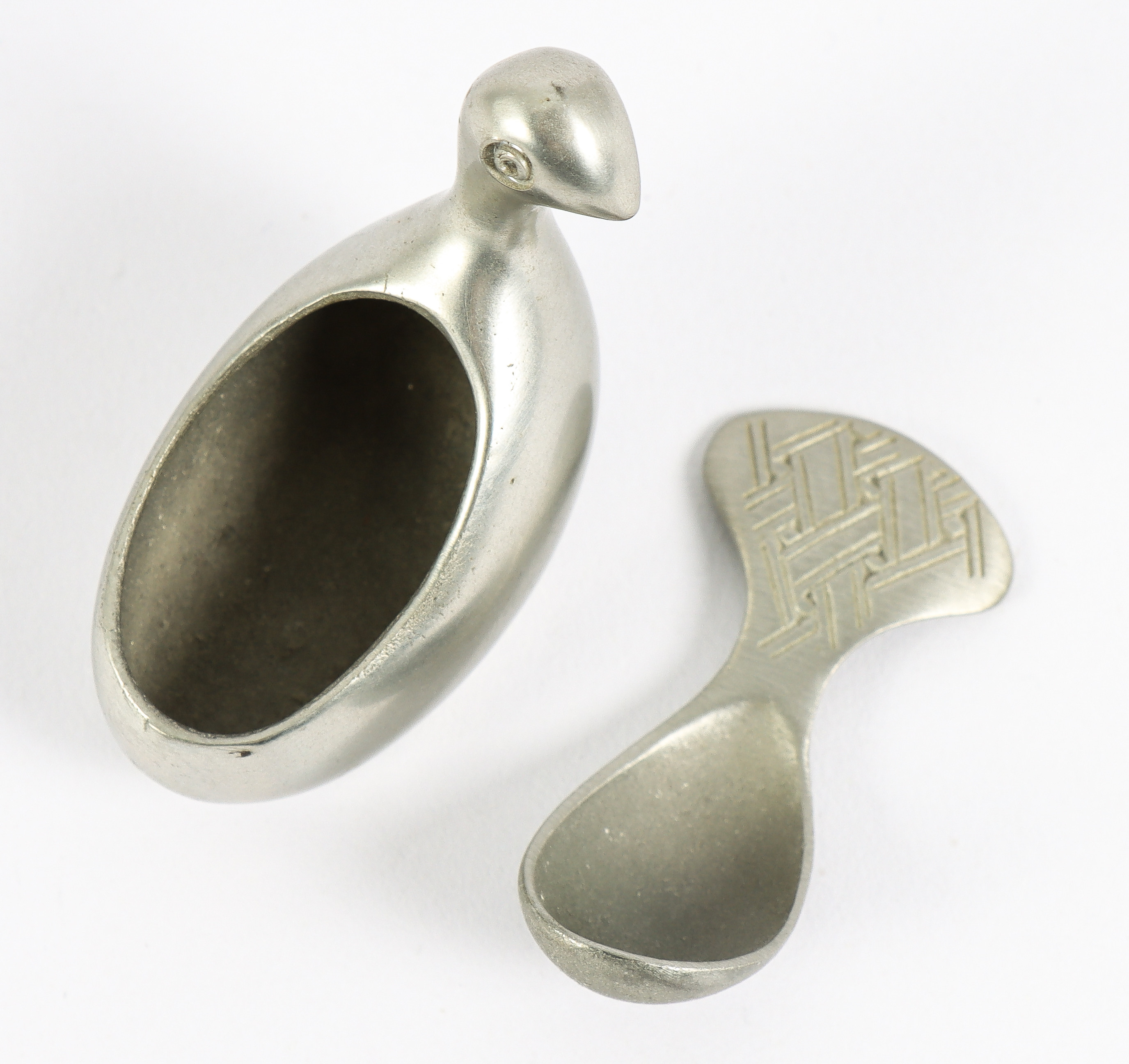 4956710. LARS PIRAK. Saltbeholder med ske, tin.