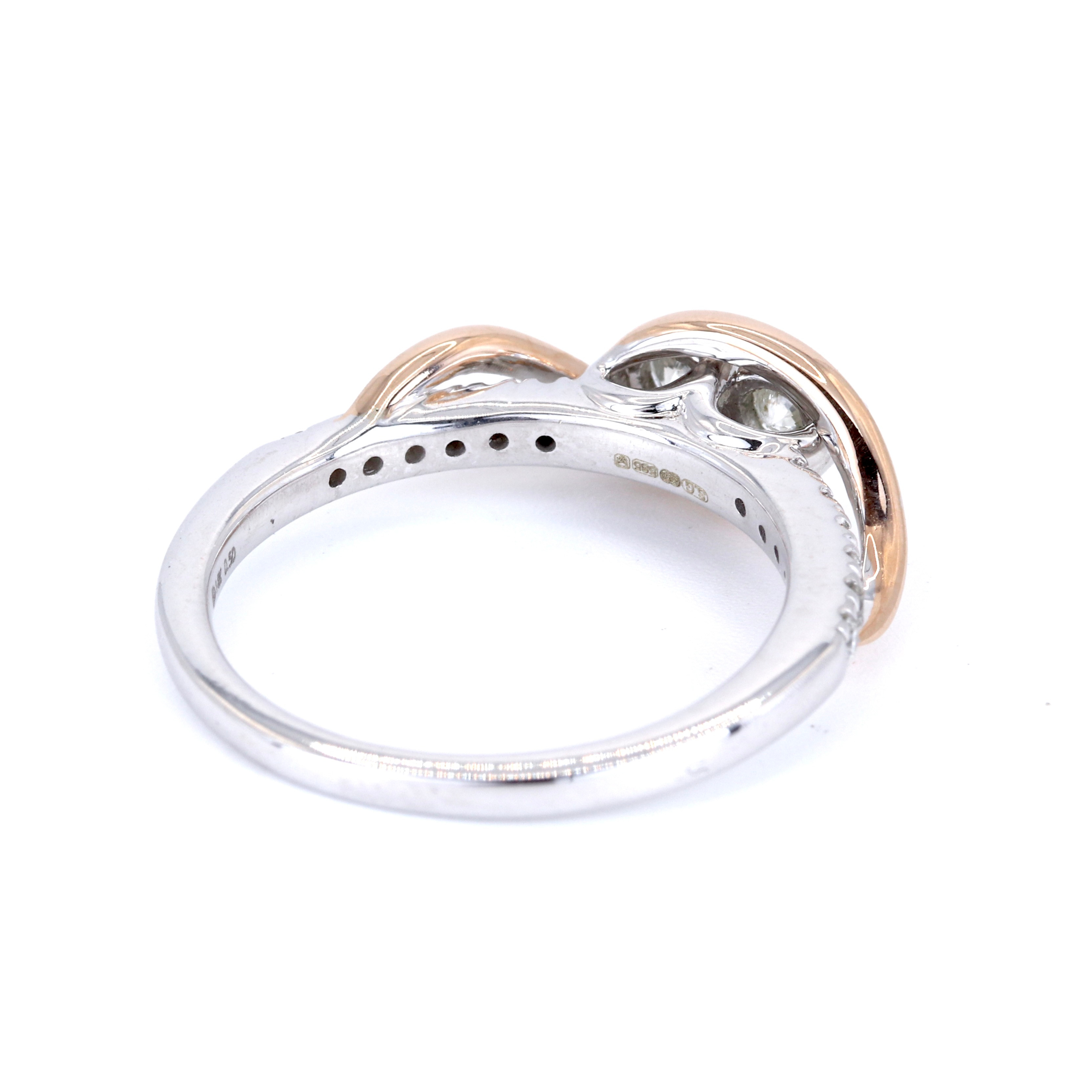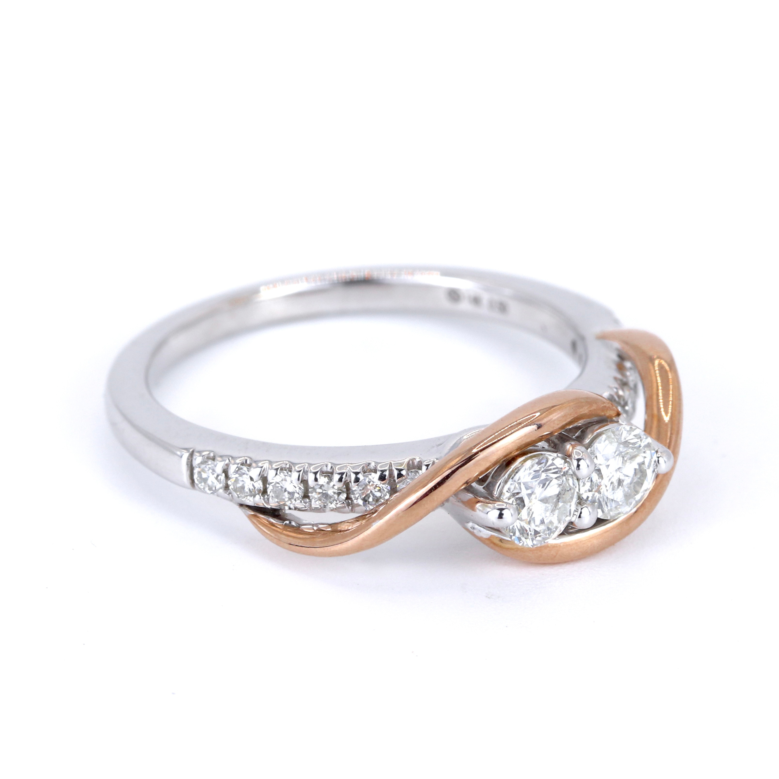 4957614. 14KT ROSA & HVIDGULD DIAMANT SÆT RING.