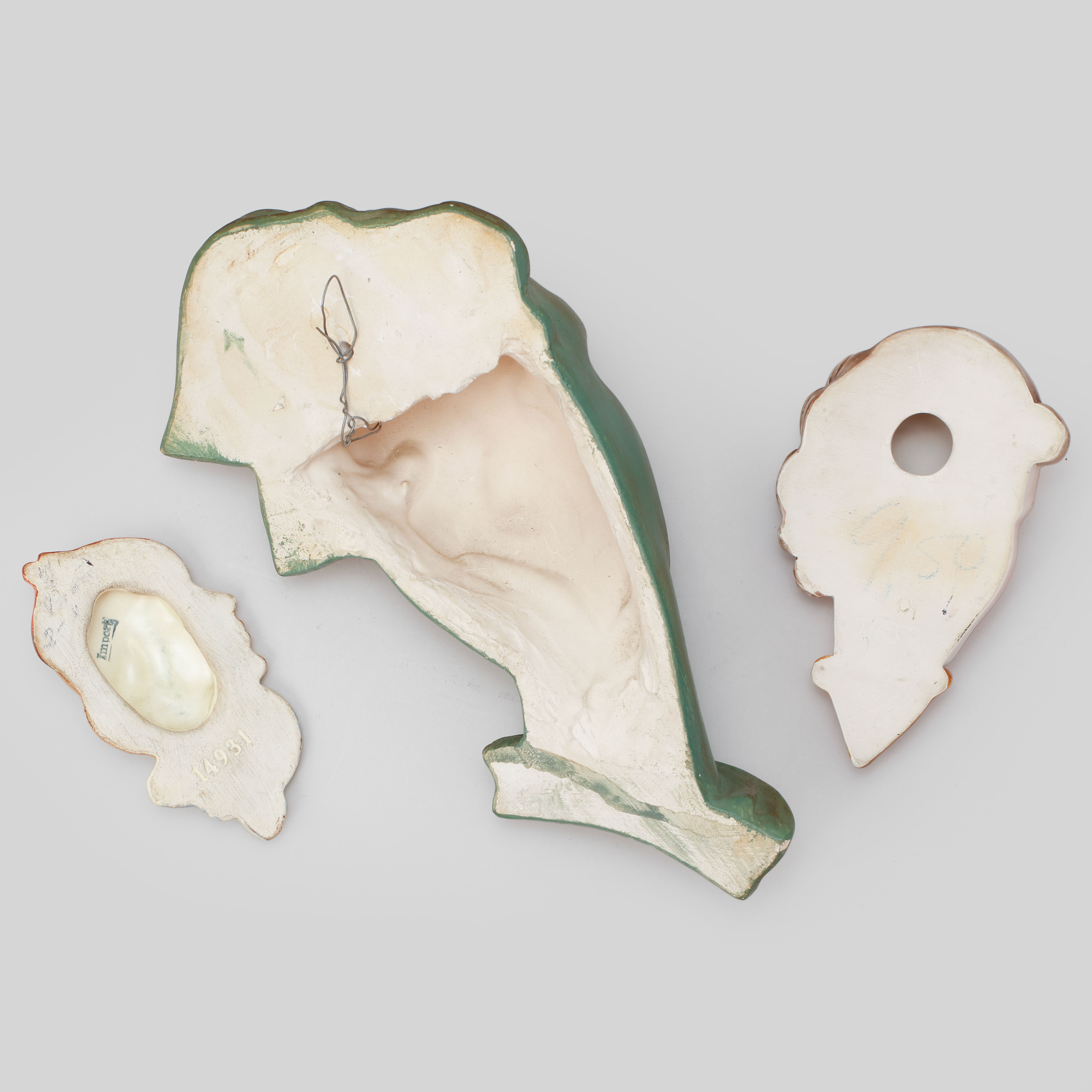 4957785. Vægrelieffer, 3 stykker, porcelæn og gips.