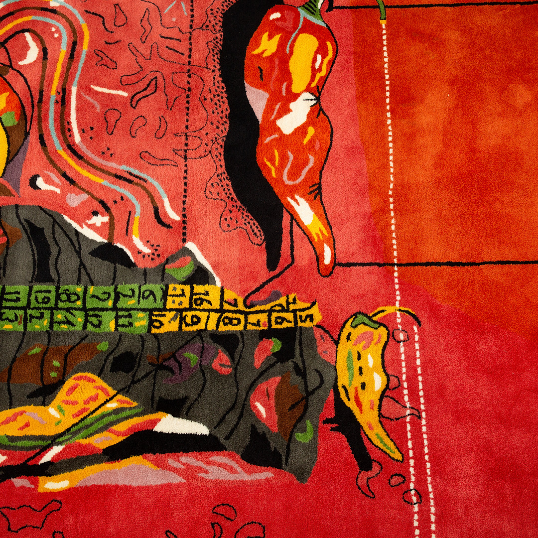 4958536. ARDY STRÜWER. Tæppe/vægtæppe, "Torso + pepperonis", uld.