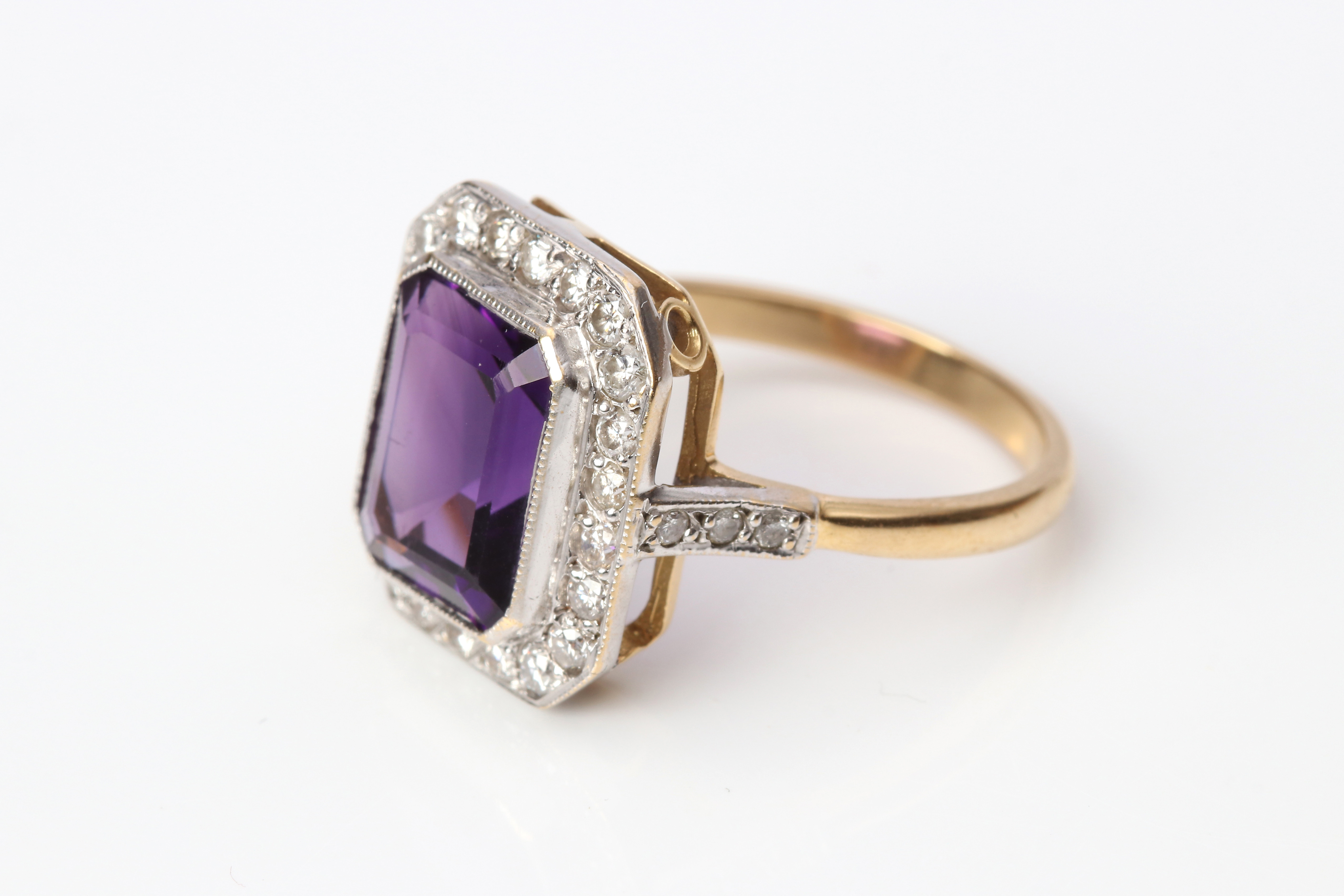4959072. AMETISTRING 18K med diamanter.
