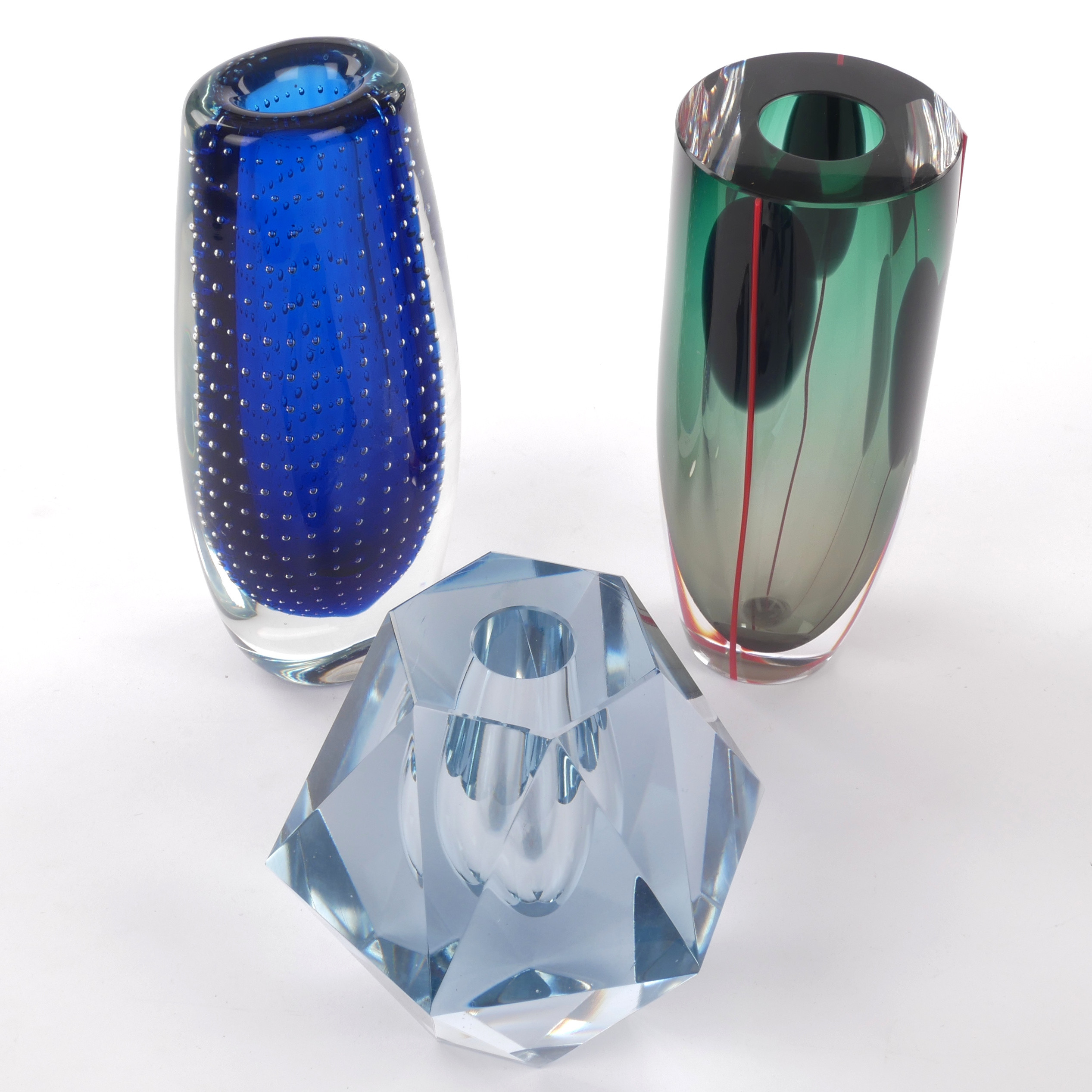4960356. Et sæt med 3 kunstglasvaser, blå Asta Strömberg.