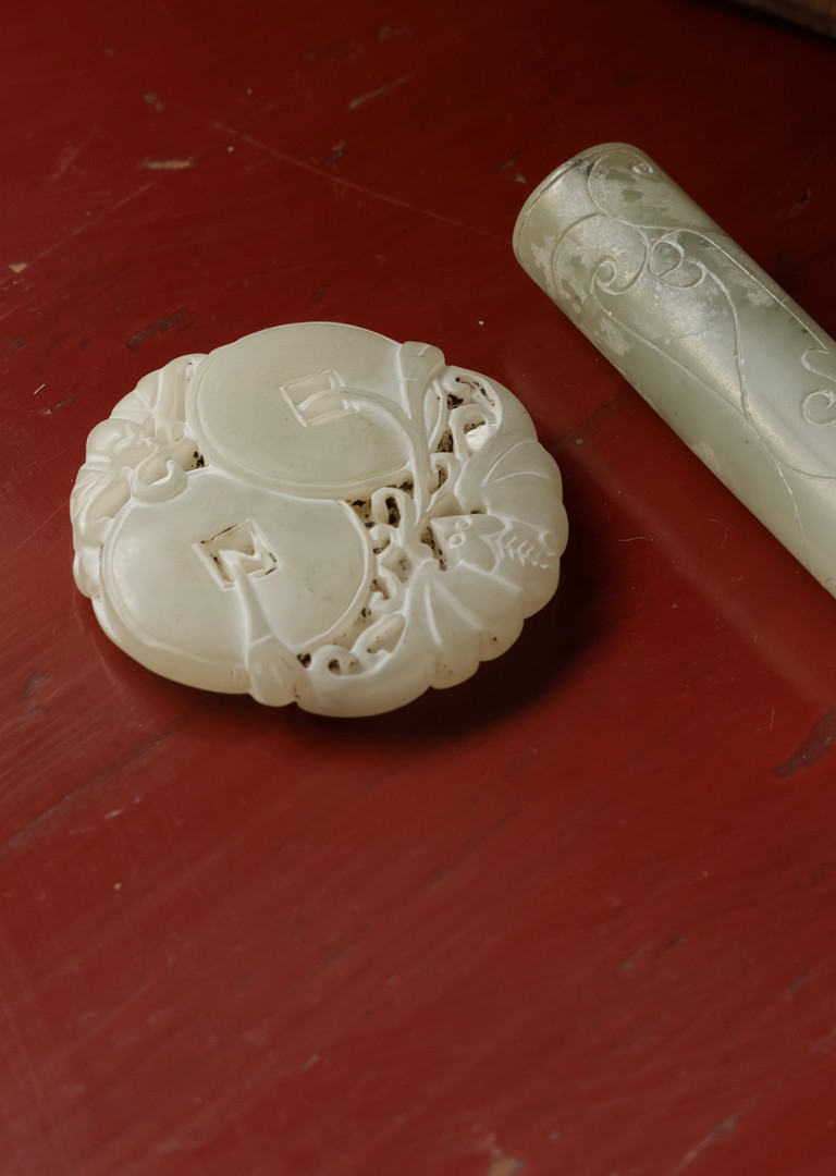 4960712. Kinesisk jade med udskæringer.