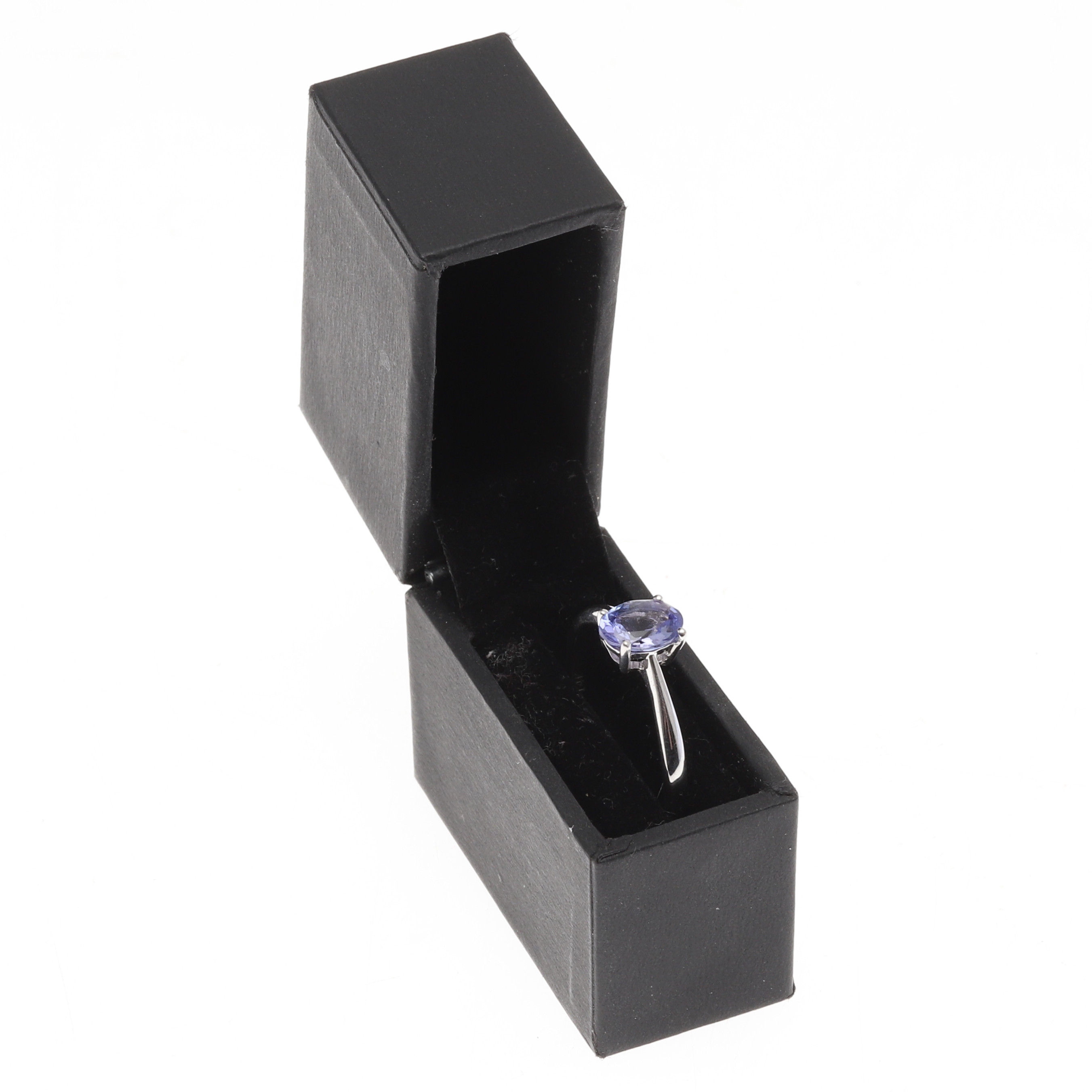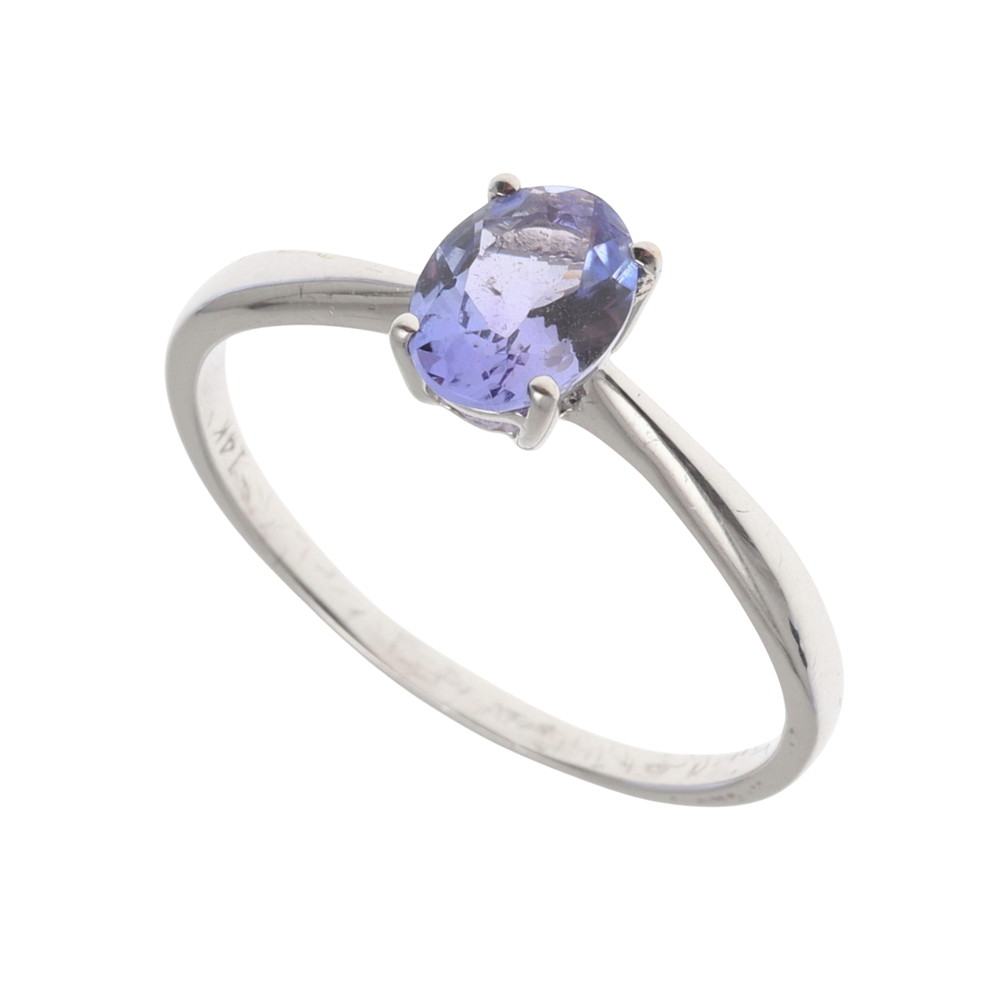 4960923. EN TANZANIT OG 14 KARAT GULD ENKELTSTENRING.