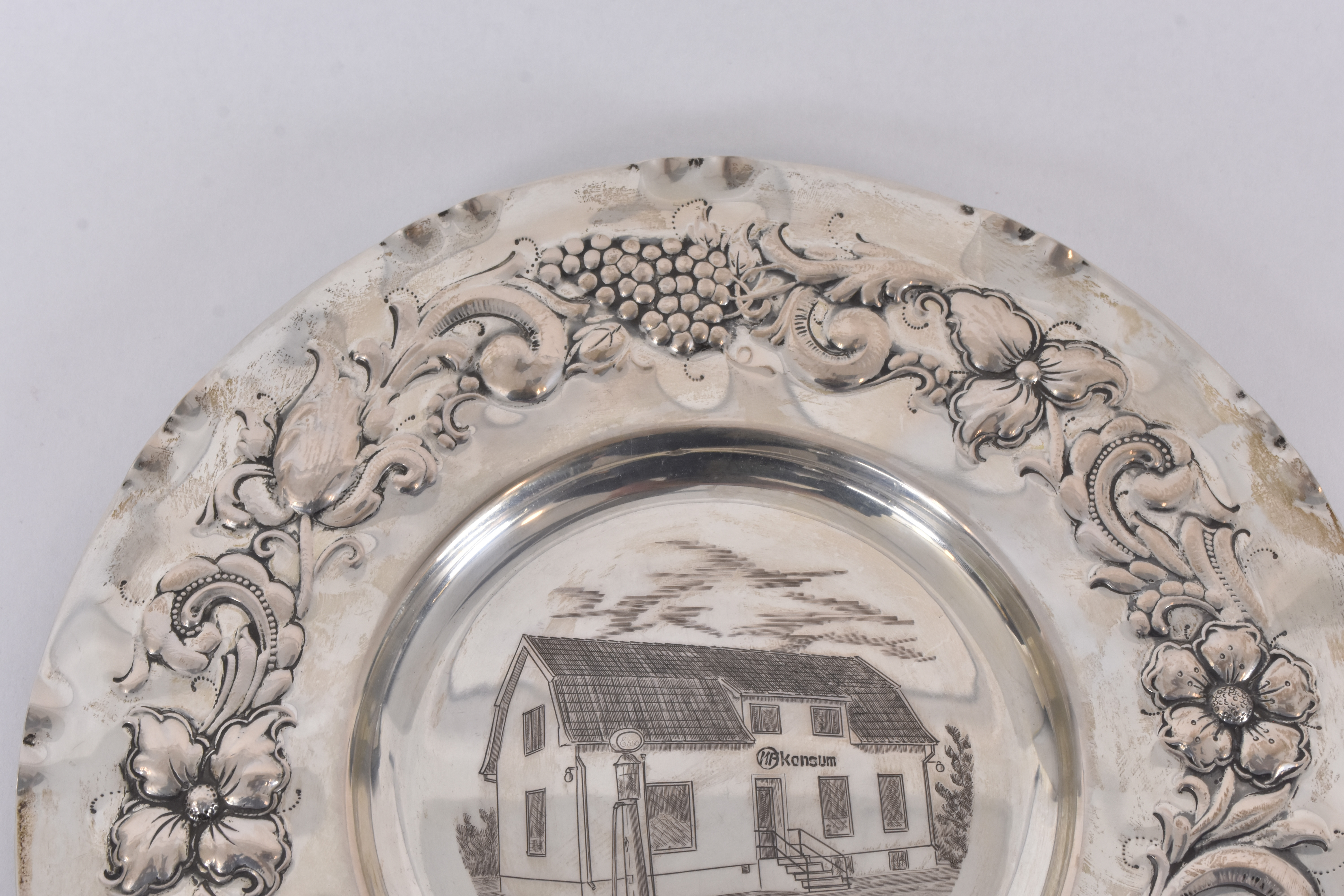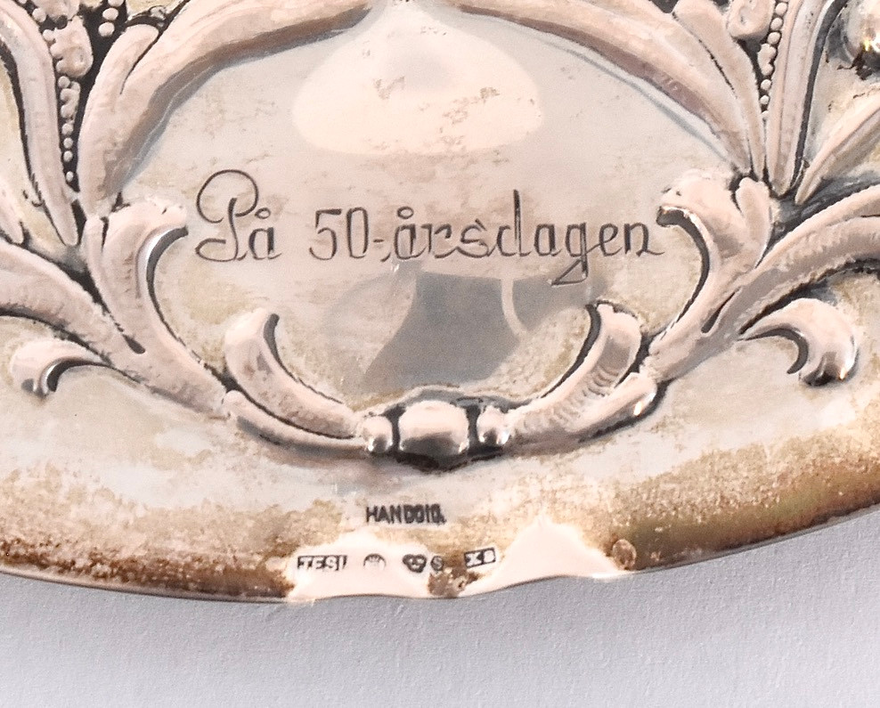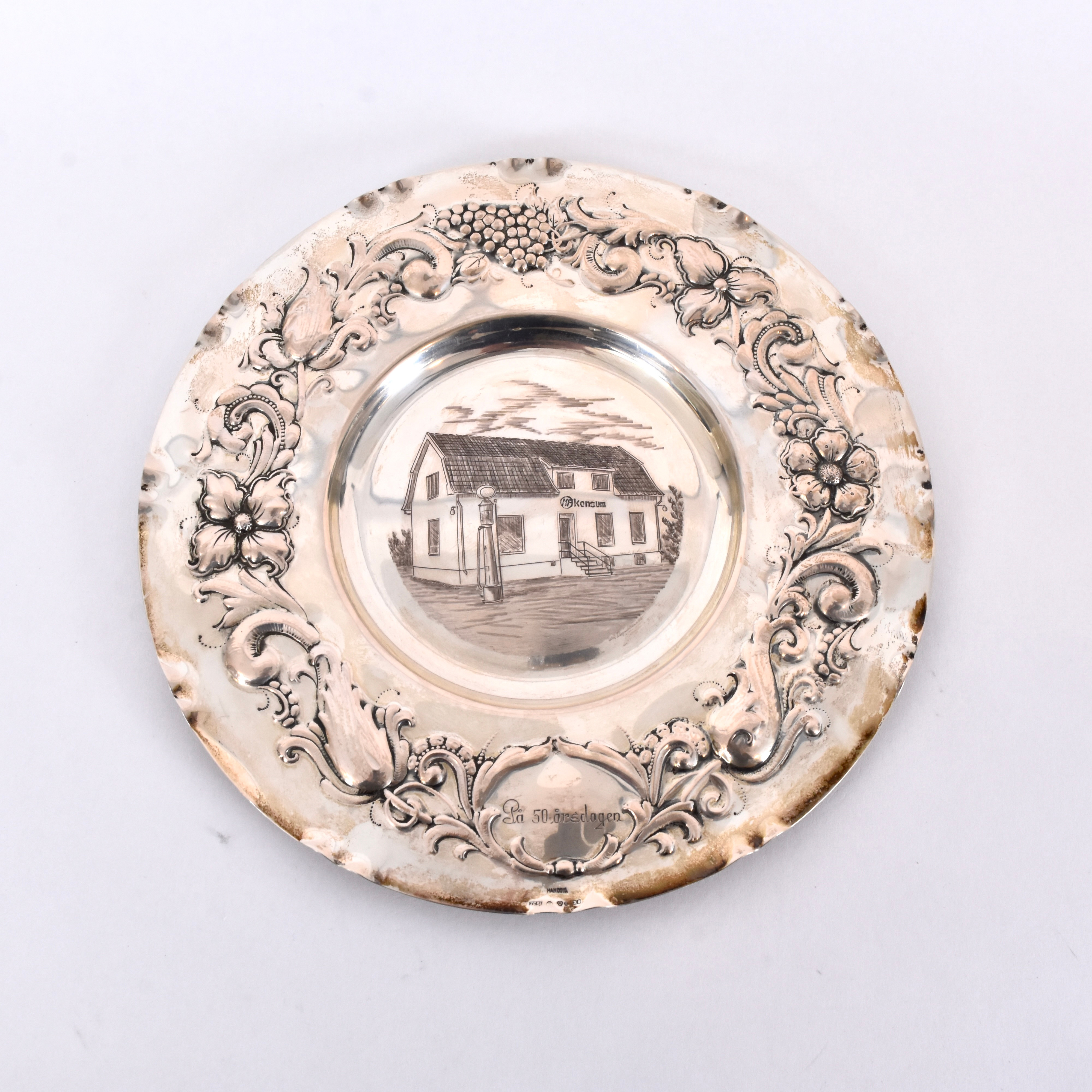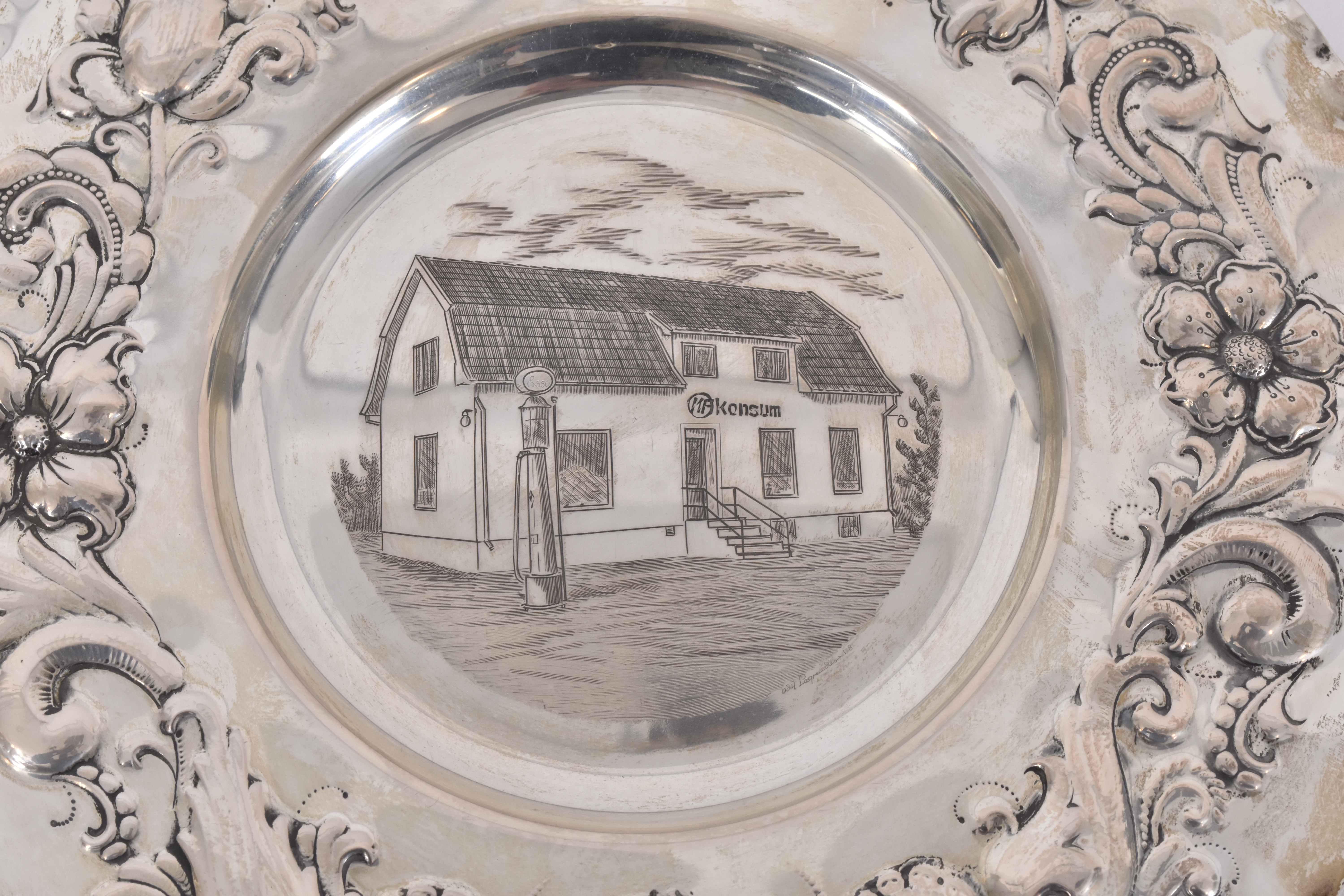 4960933. PRESENTATIONSPLADE, SØLV, Tin & Sølv Göteborg 1948.