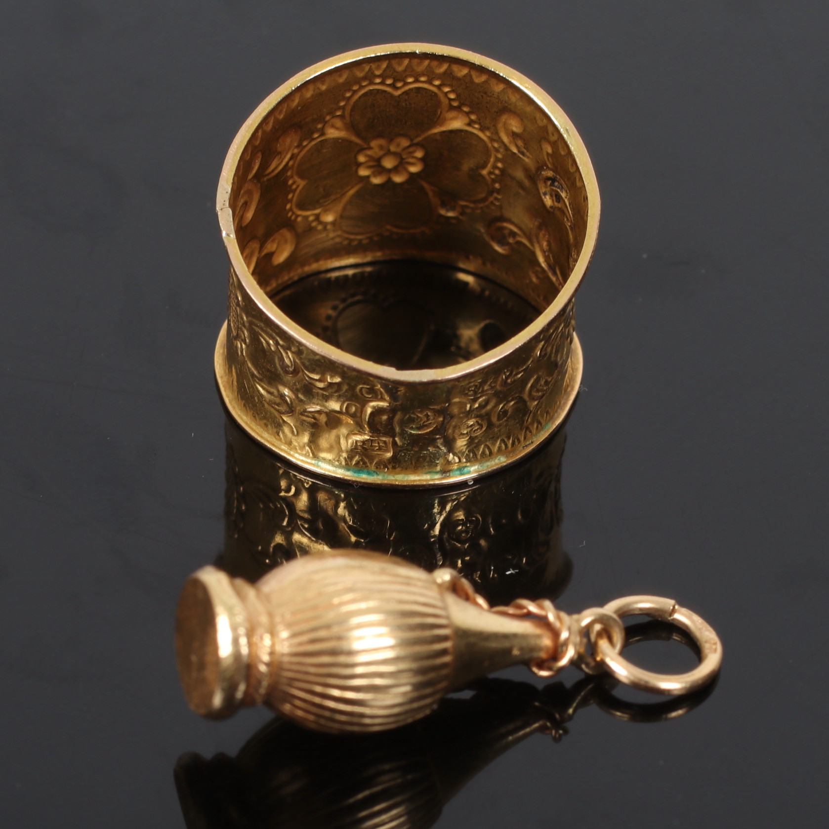4961487. VEDHÆNG og RING, 18kt guld, 20. årh.