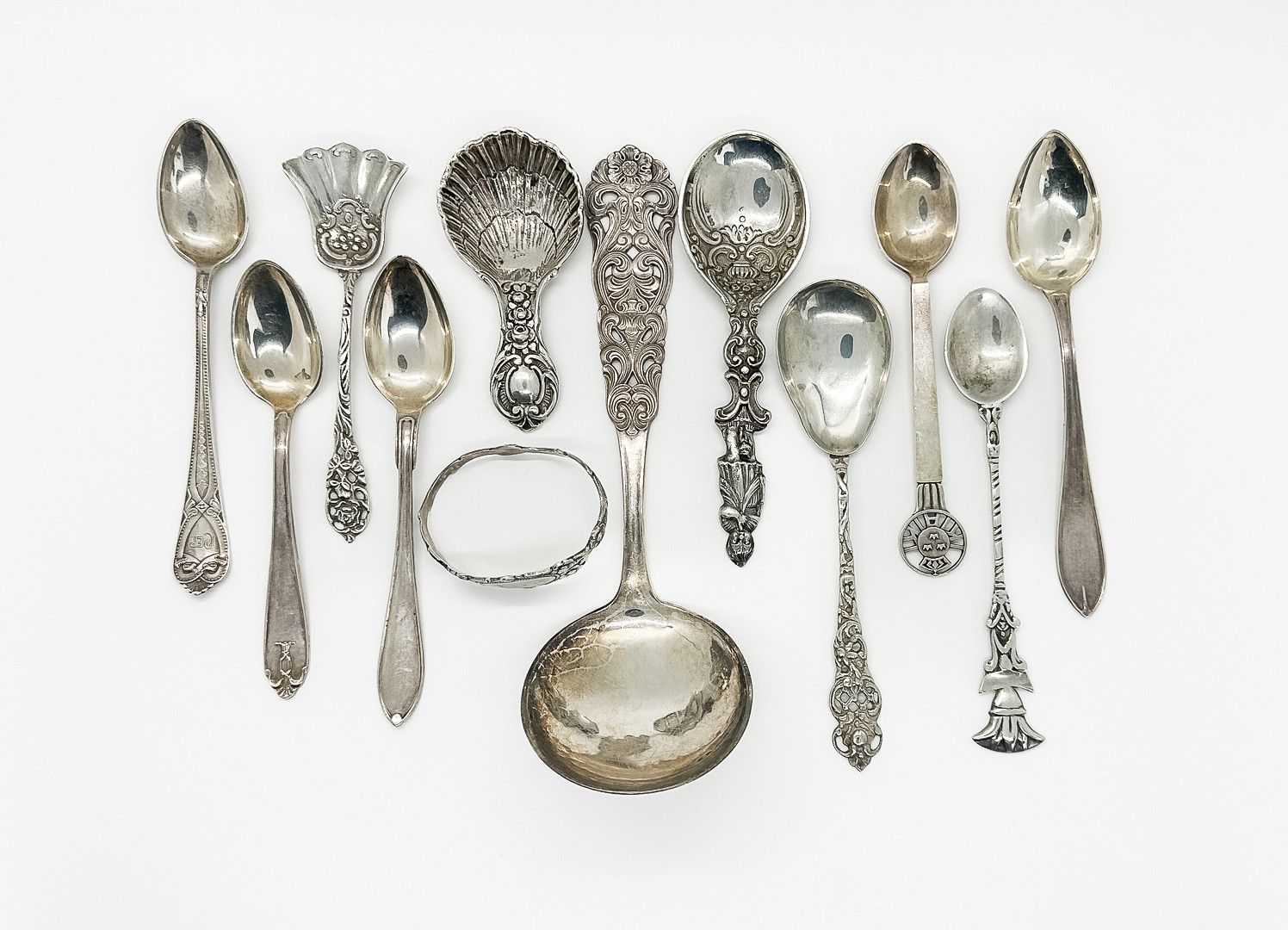 4962619. SØLVDELE, 12 stykker, 231 gram.