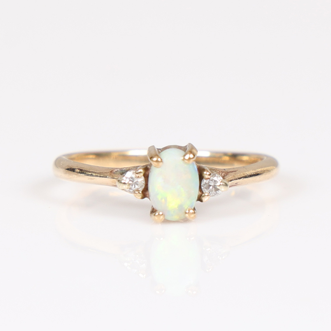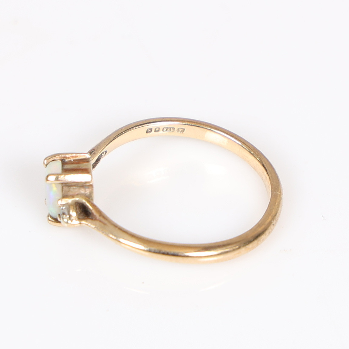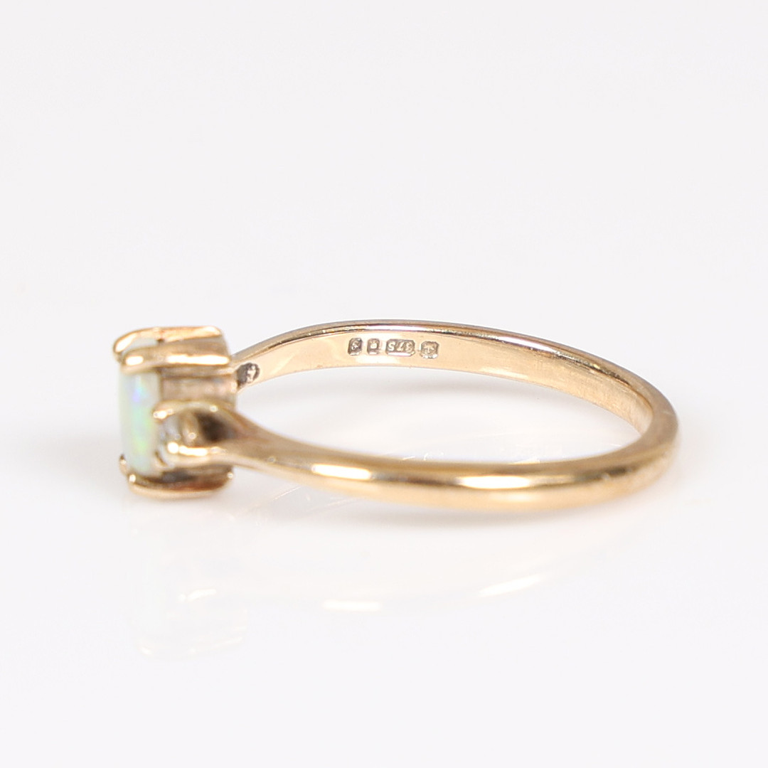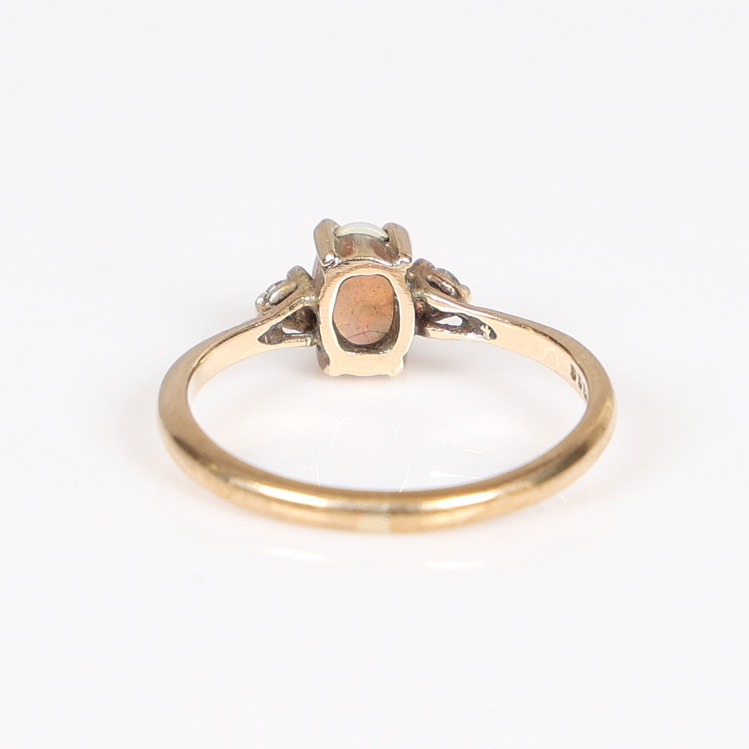 4962829. EN RING MED 9 KARAT GULD OPAL OG DIAMANT.