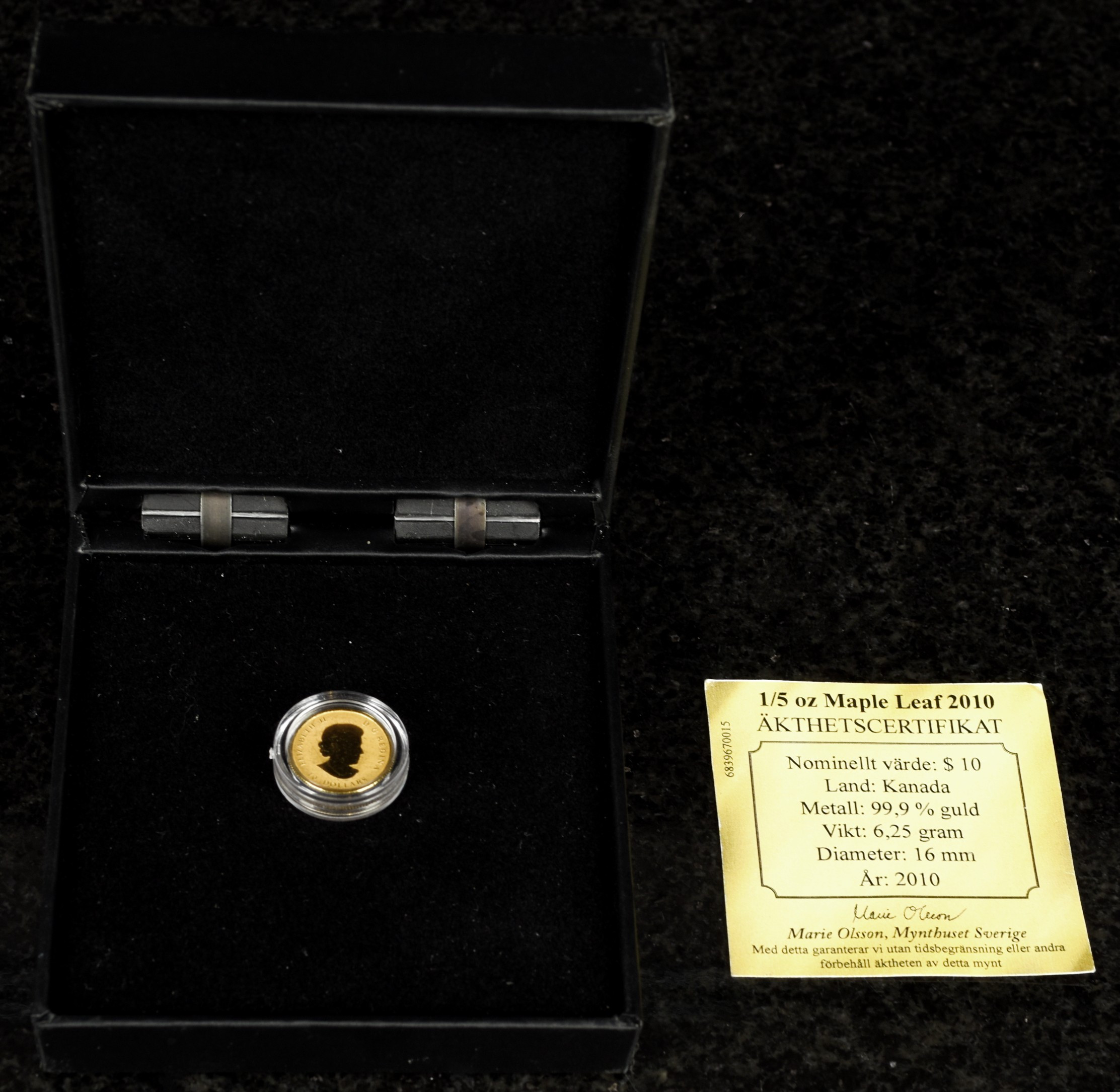 4962853. GULDMØNT, 1/5oz, Maple Leaf Canada 2010.