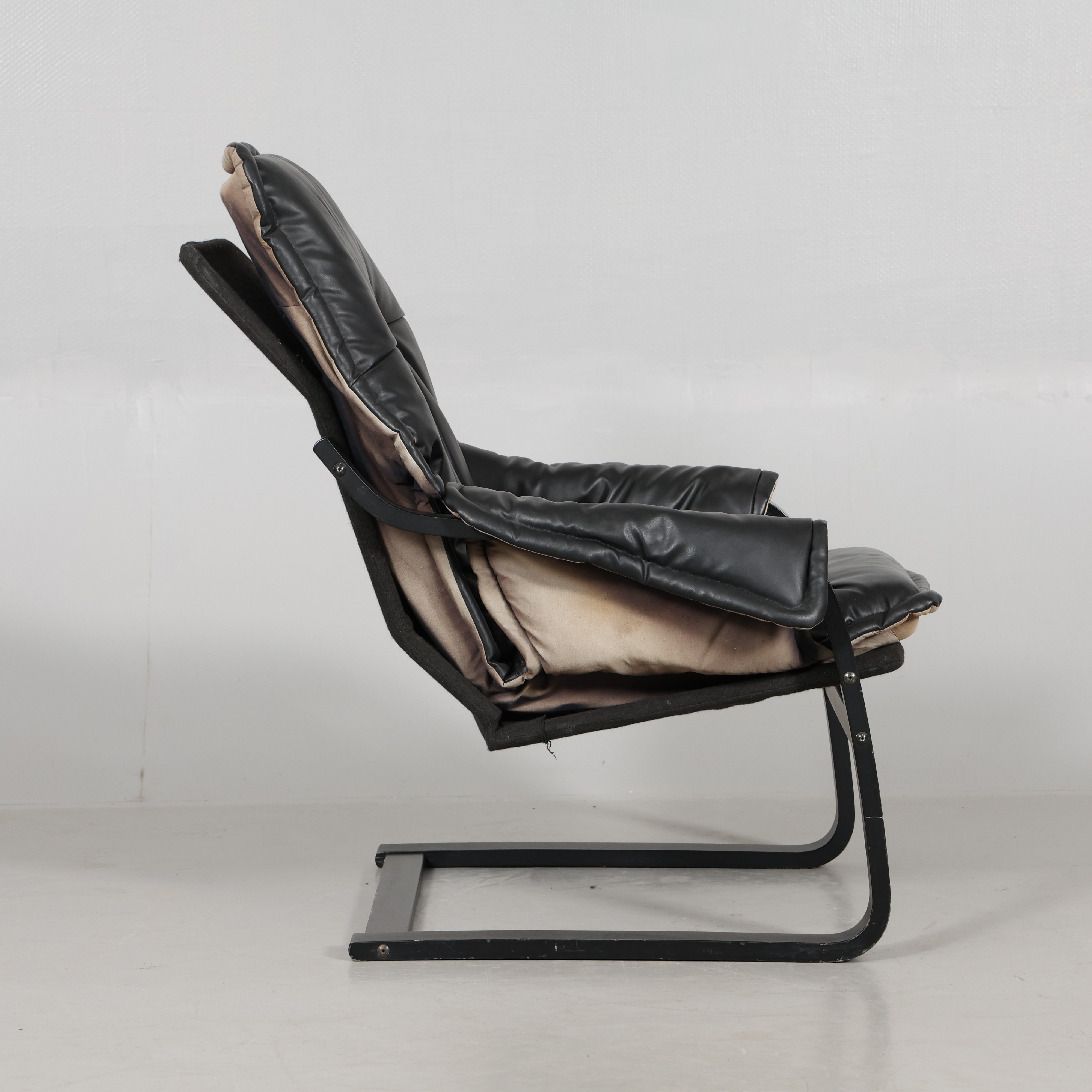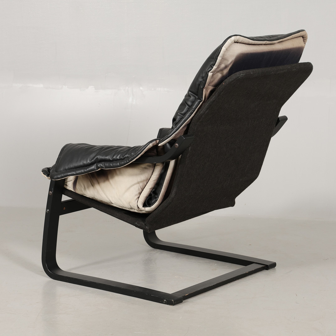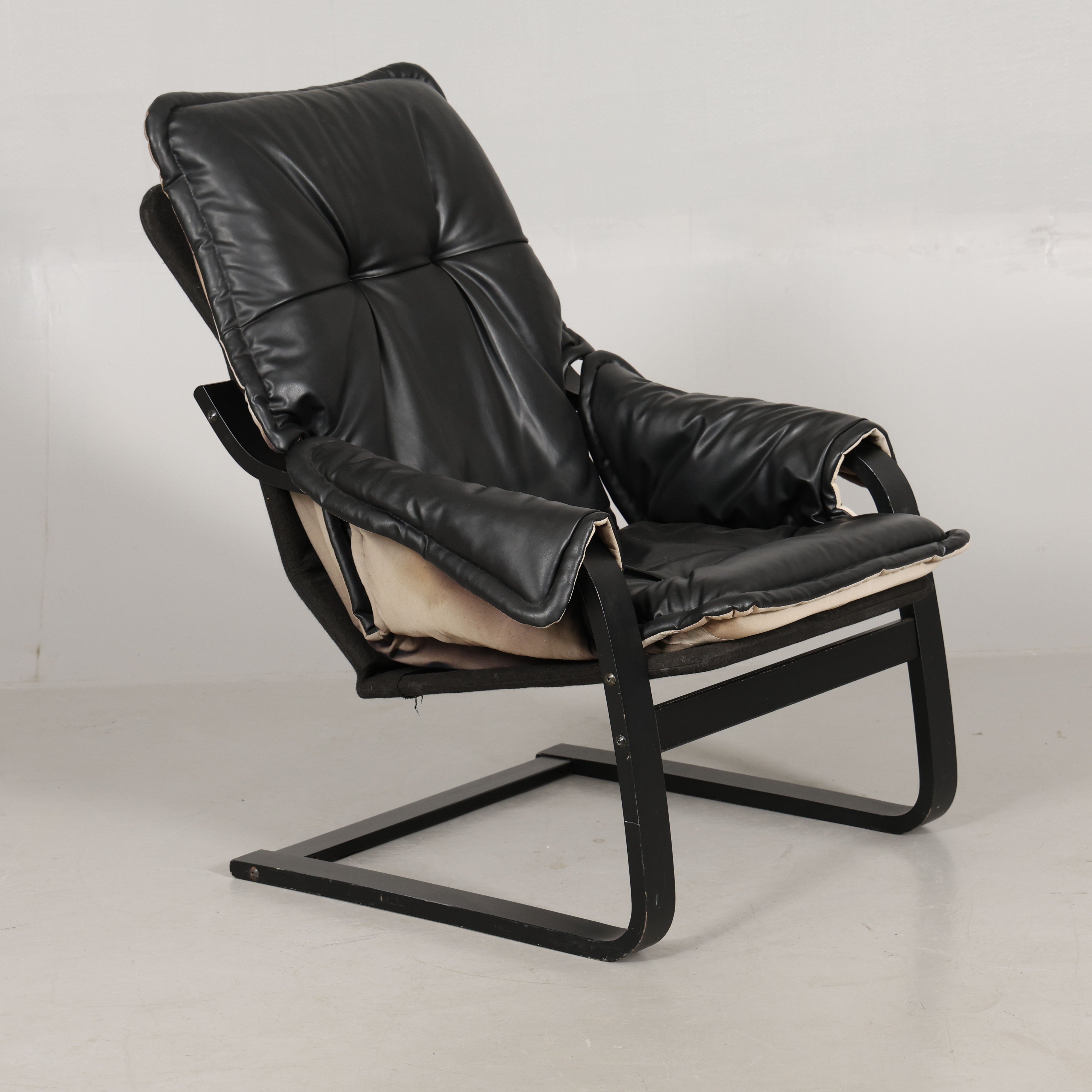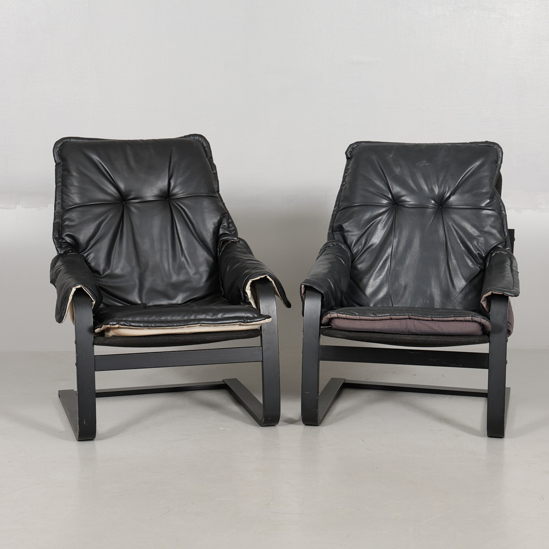 4964825. LÆNESTOLE, 1 par, buet træ/kunstlæder.
