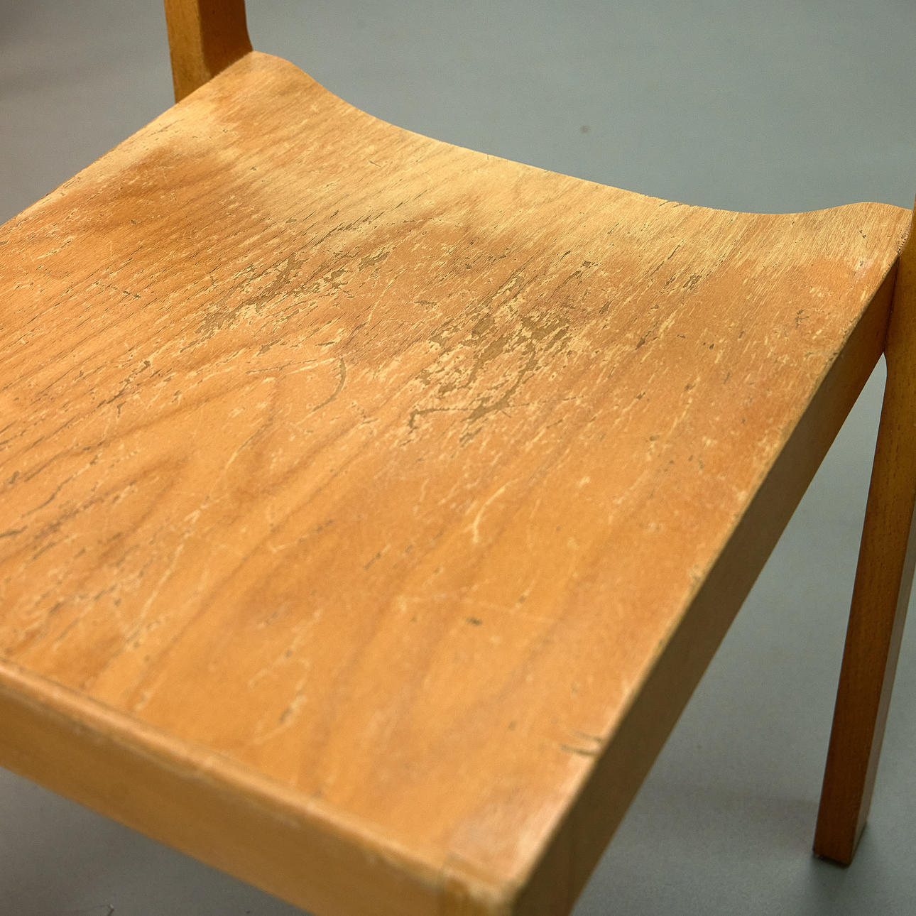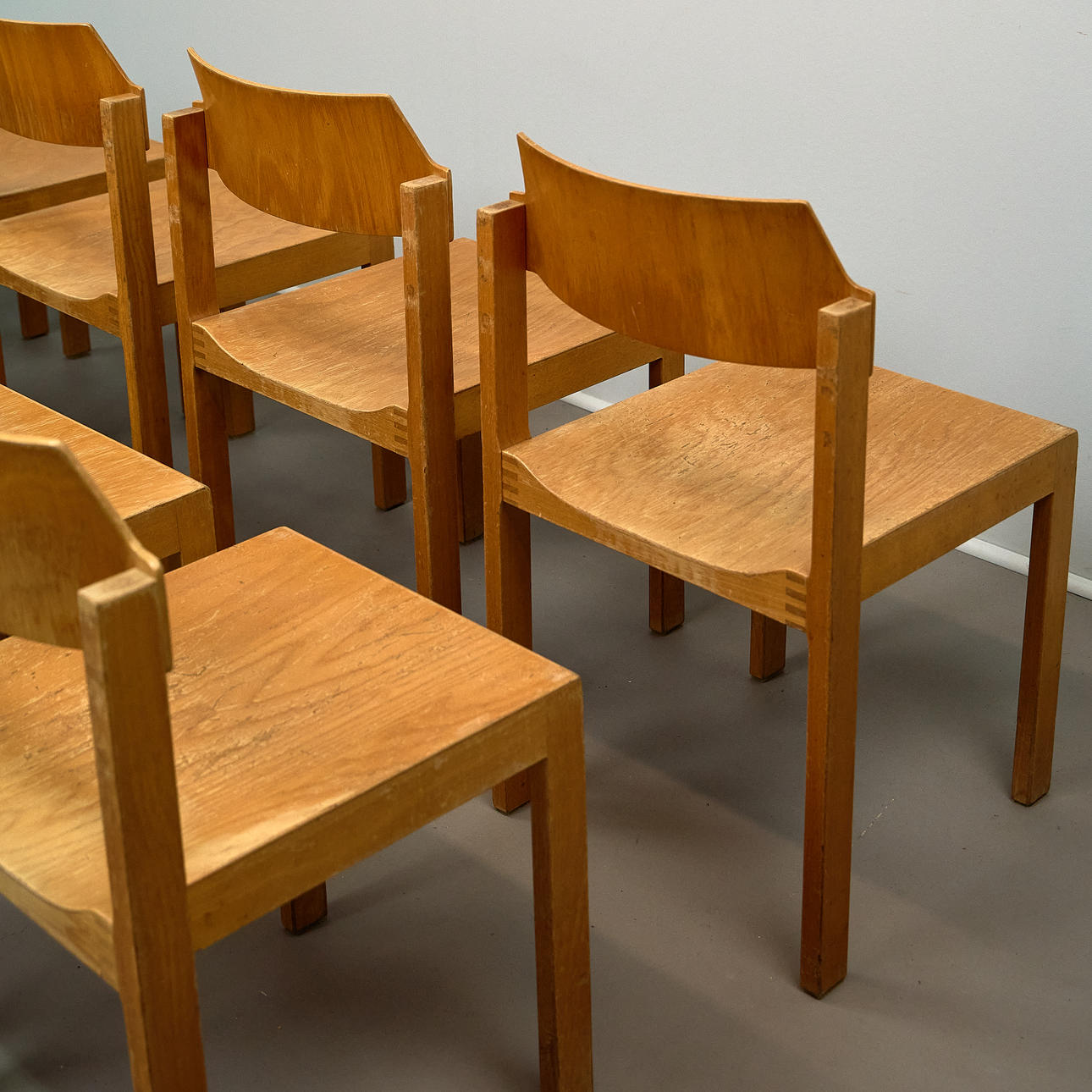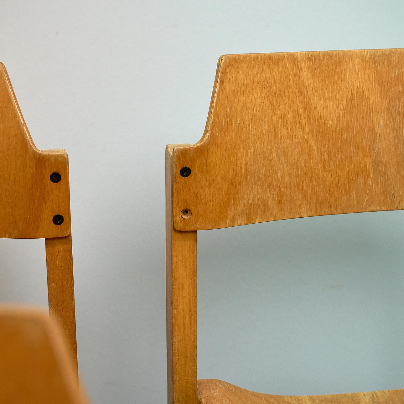 Lette lakerede trærammer. Støbt krydsfiner sæde og ryglæn. Stabelbart design med et klart, funktionelt design.