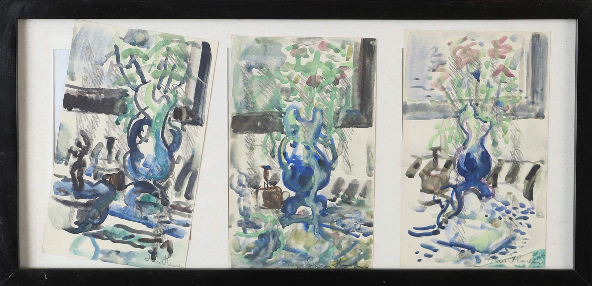 4965608. LARS HERDER. Triptyk, stilleben, akvareller, signeret.