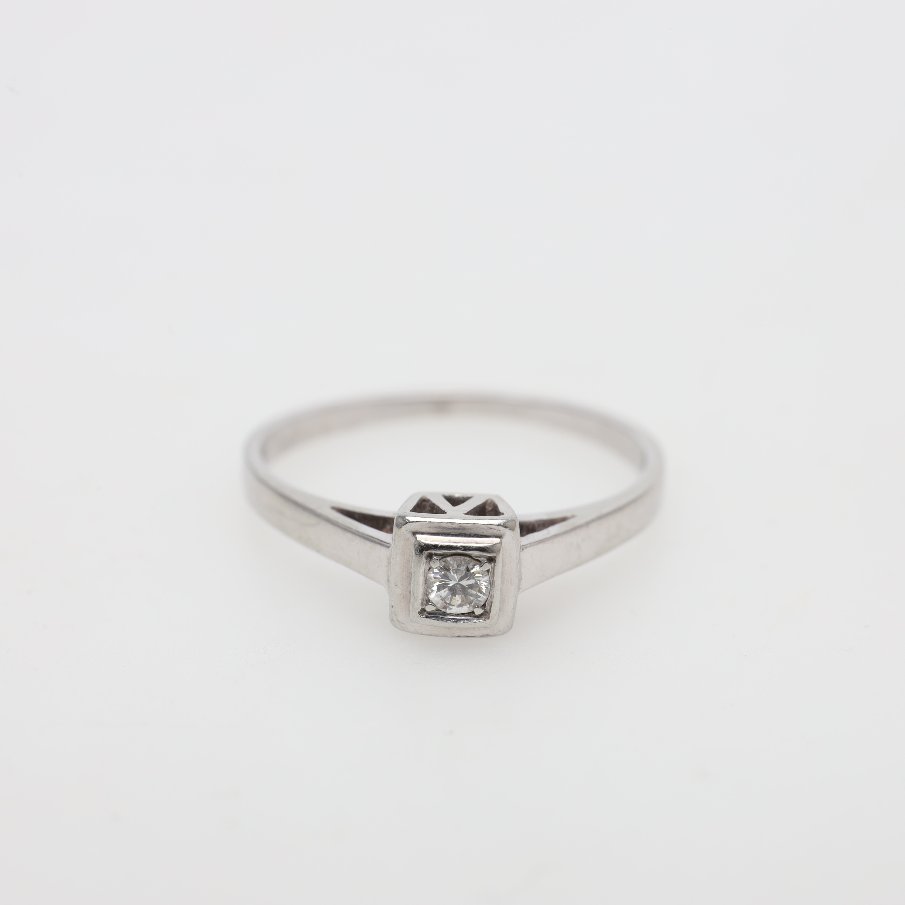 4966615. RING, hvidguld, 18K, diamant, vægt ca. 2 gram.