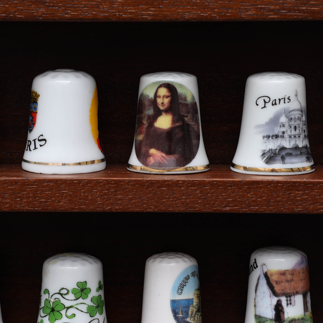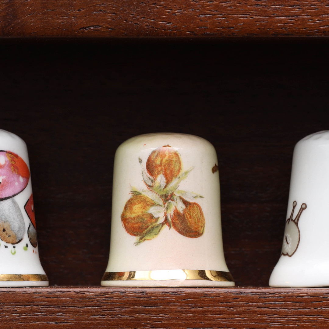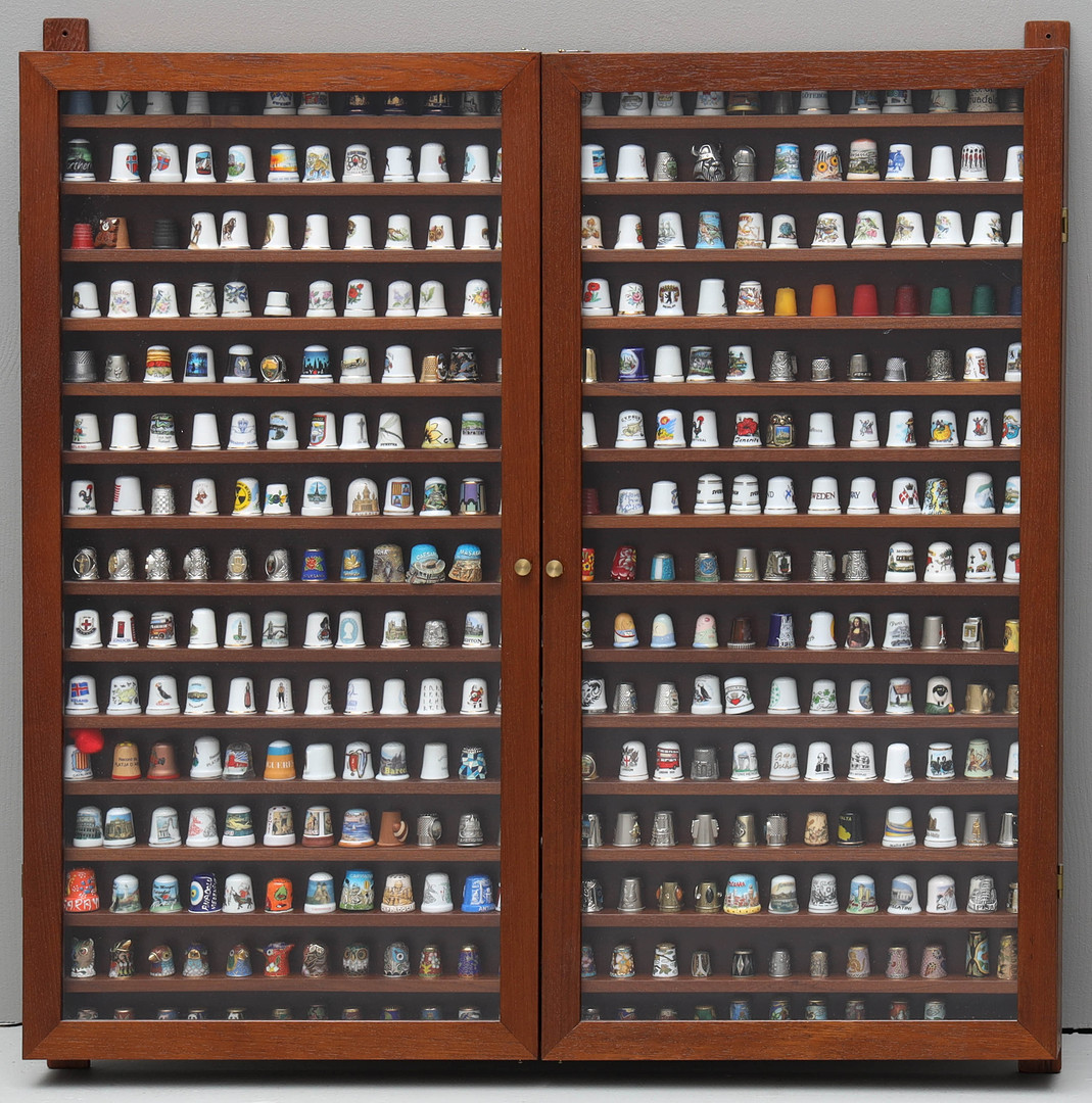 4967017. VITRINESKAB TIL FINGERBØL, træ og glas.