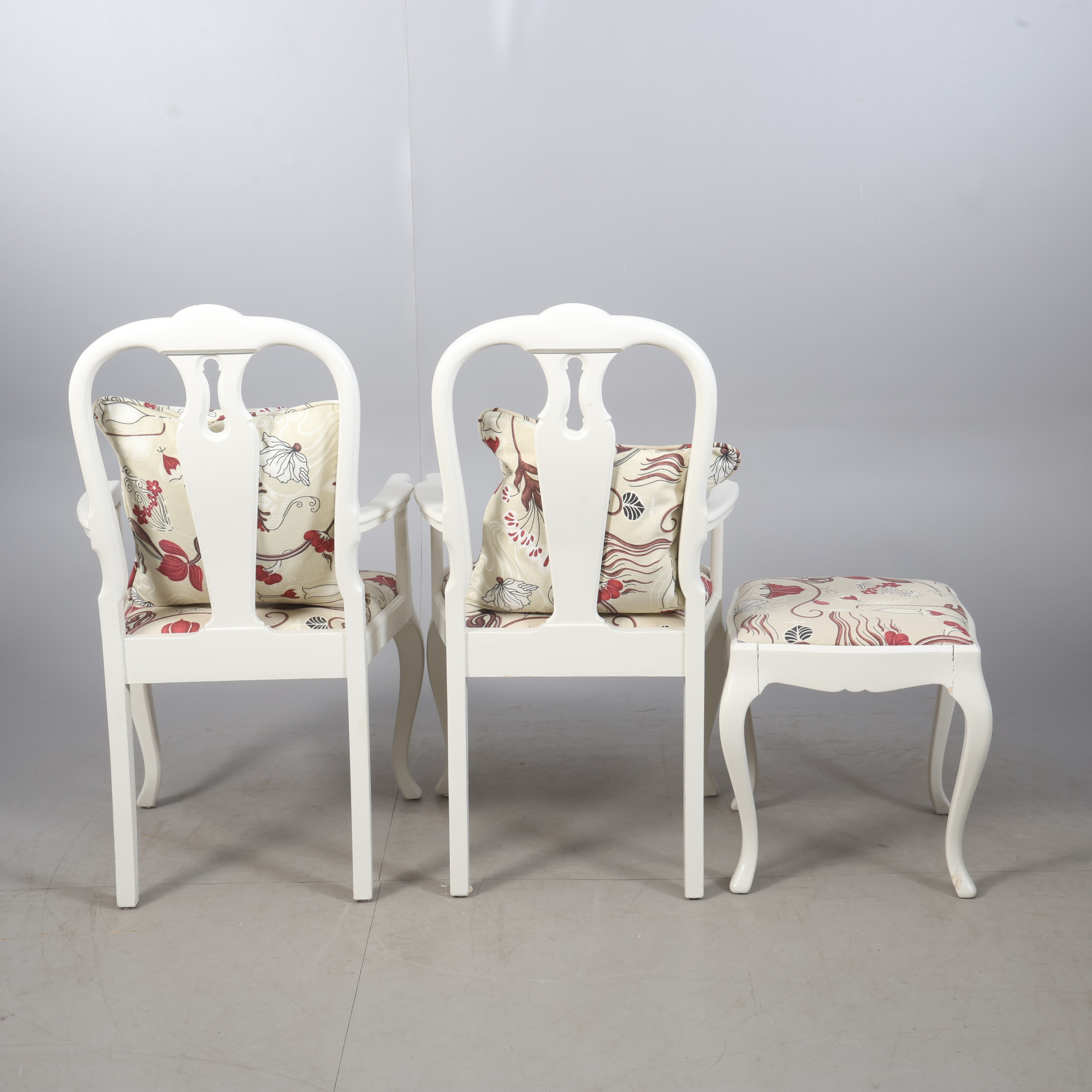4968181. LÆNESTOLE & PALLE, 3 stk., Rococo stil.
