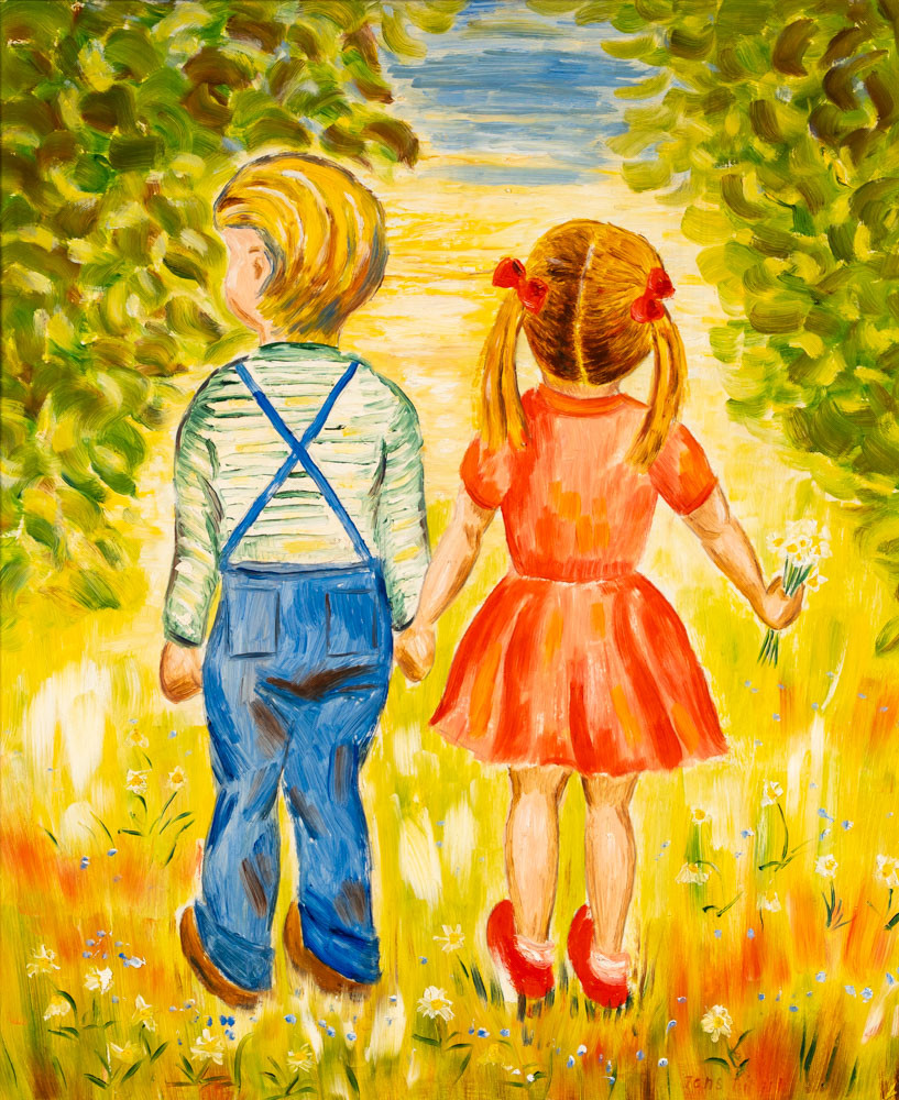 4968677. OIDENTIFIERAD KONSTNÄR. Underskrevet: „Da vi var små“.