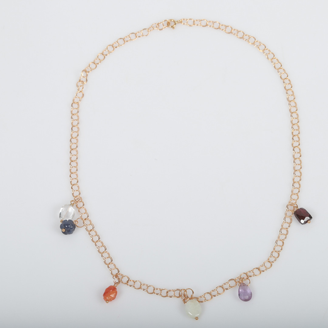 4969364. HALSKÆDE, 18 K guld med slibte sten.