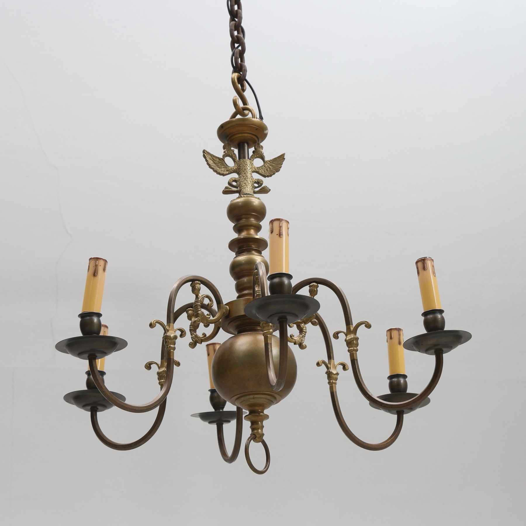 4969803. LYSEKRONE. Barok stil, messing, 6-armet.