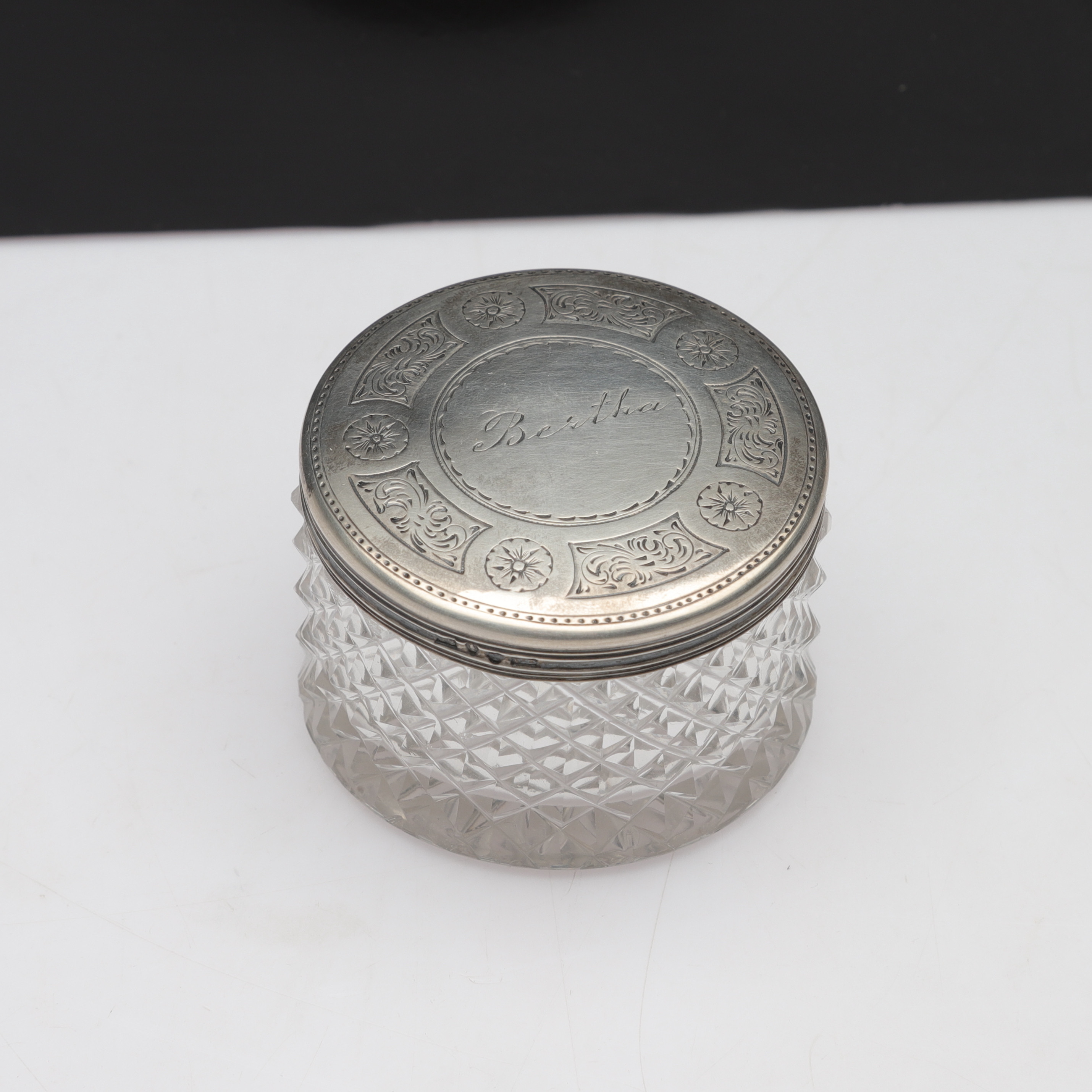 4970294. ÆSKE, glas og sølv, vægt sølv ca. 17,52g.