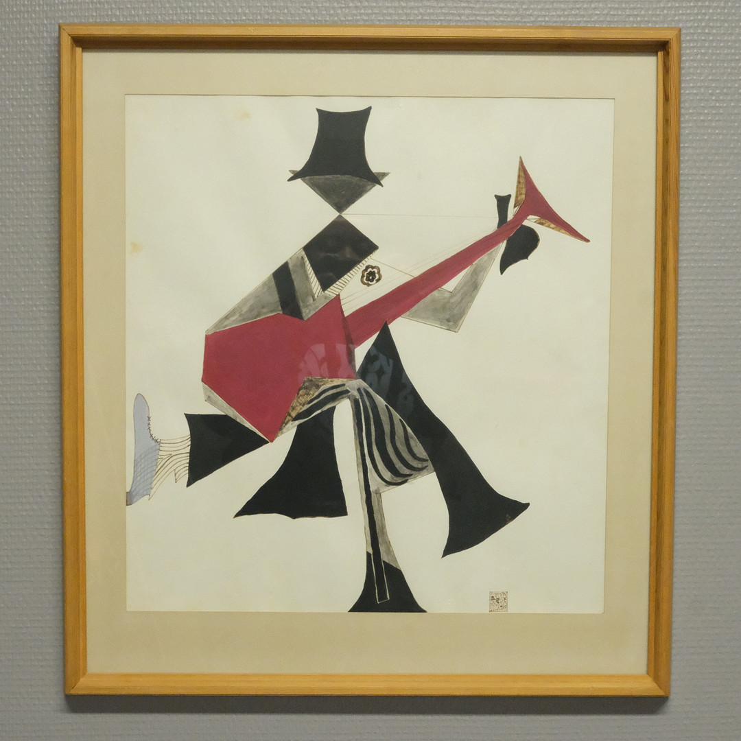 4970366. OIDENTIFIERAD KONSTNÄR. AKVAREL. GUITARIST.