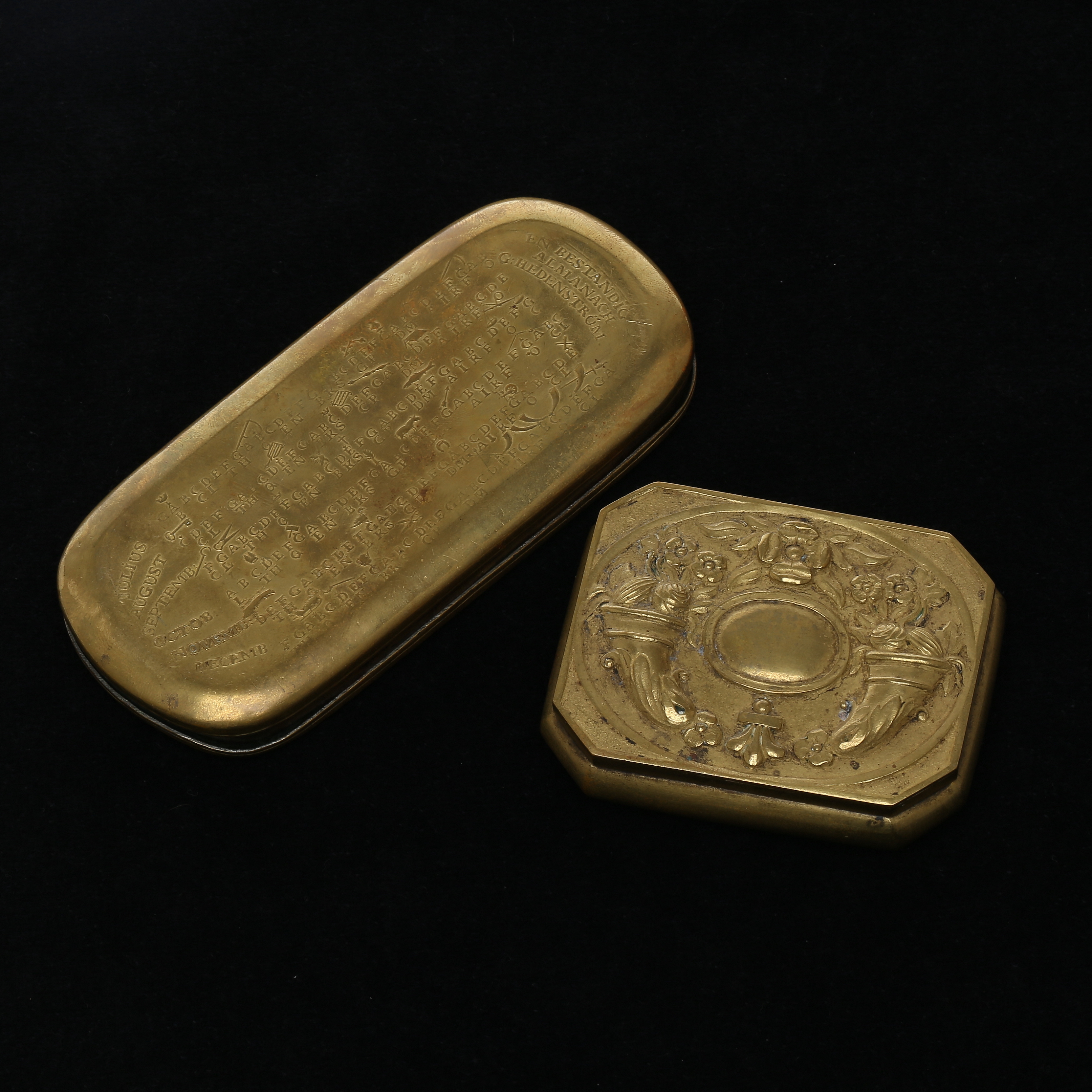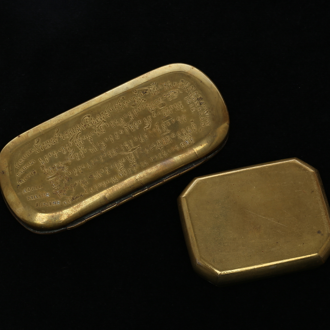 497075. SNUSæSKE, 2 stk, messing, 1800-tallet.