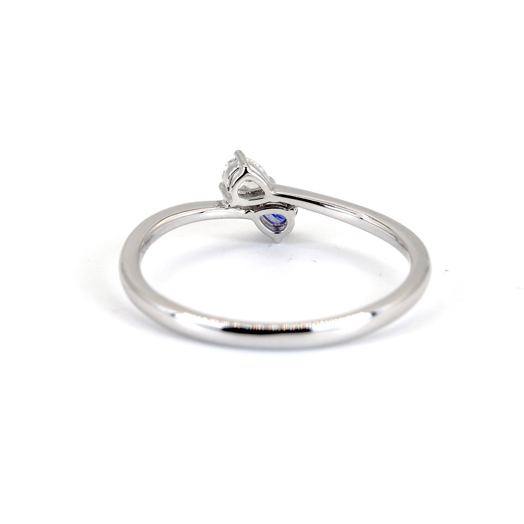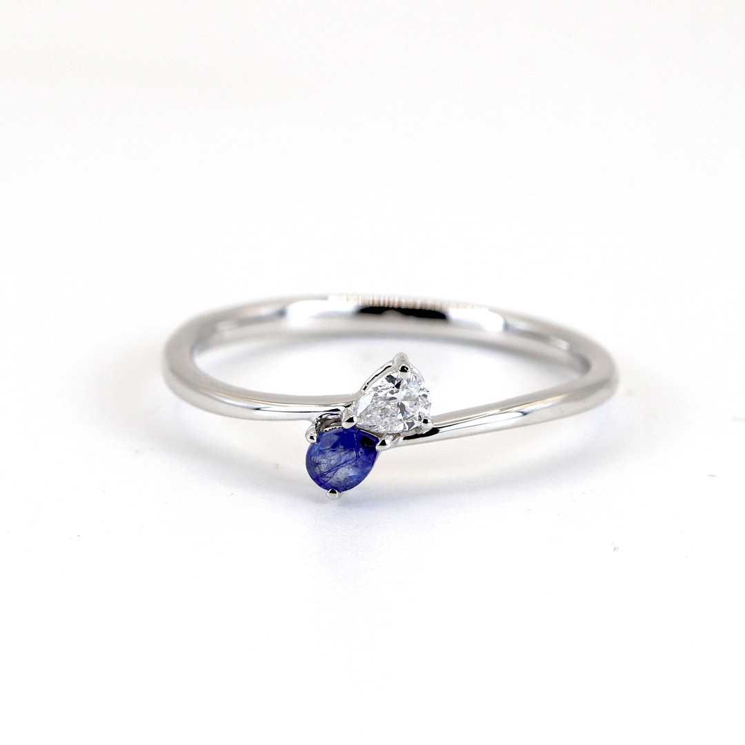 4971086. PÆRESKÅRET SAFIR OG DIAMANT 9CT RING.