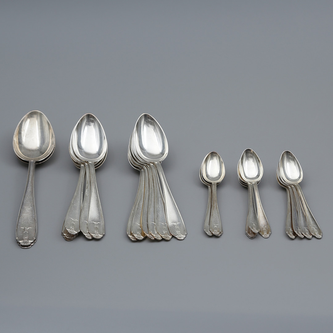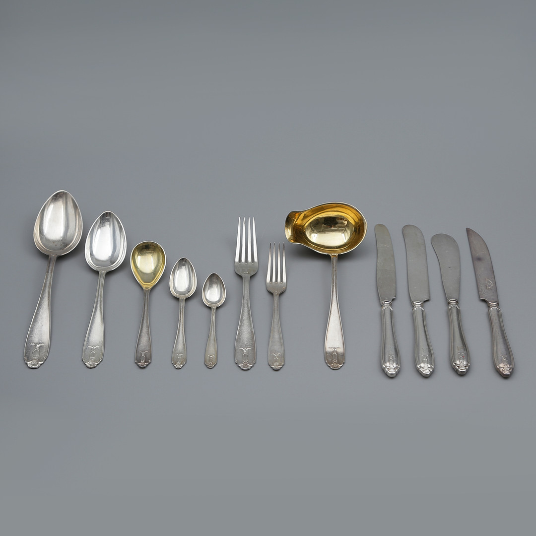 4972283. BESTIK, MODEL VASA, NYSØLV, 62 STK.