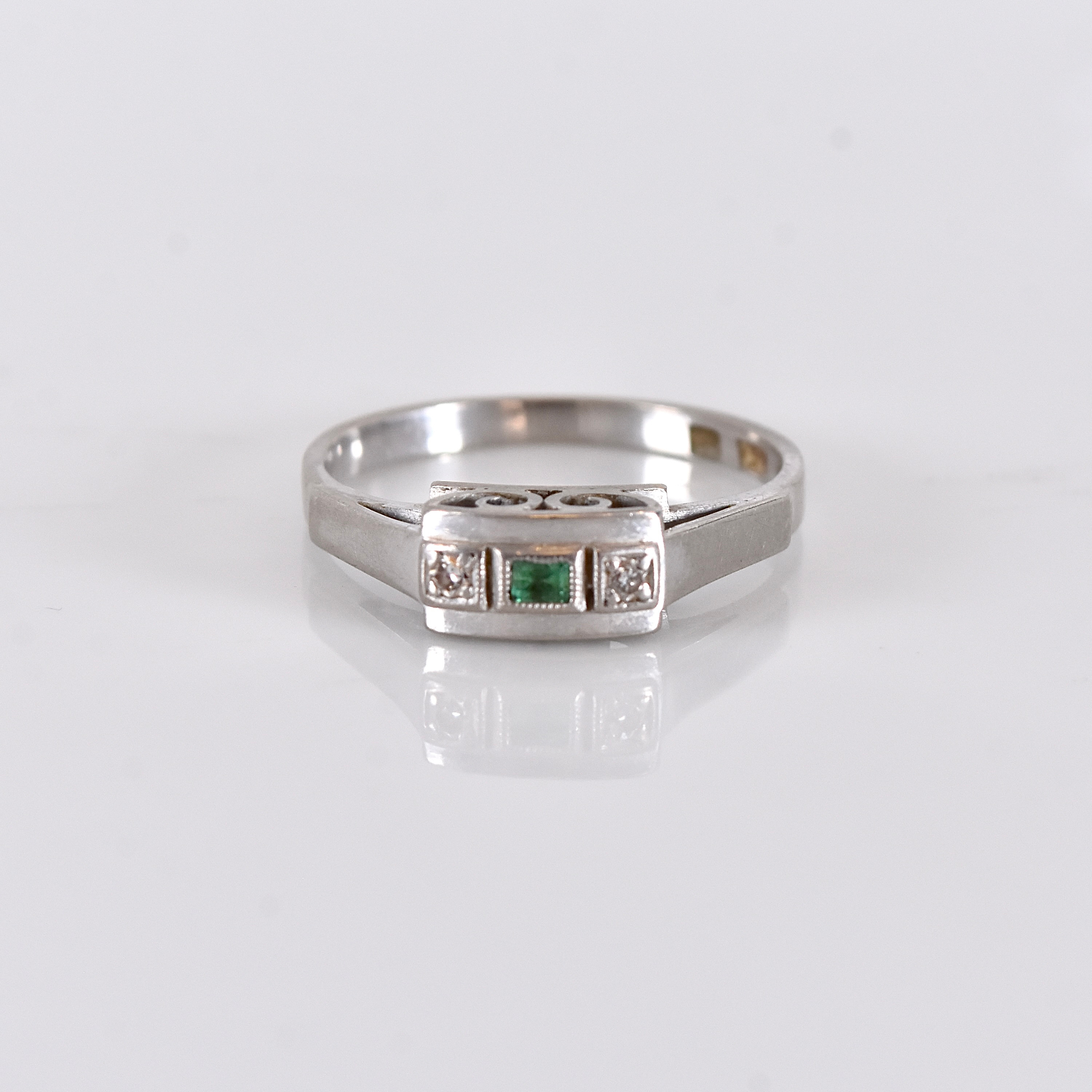 4972628. DIAMANTRING, med smaragd, hvidguld K18.
