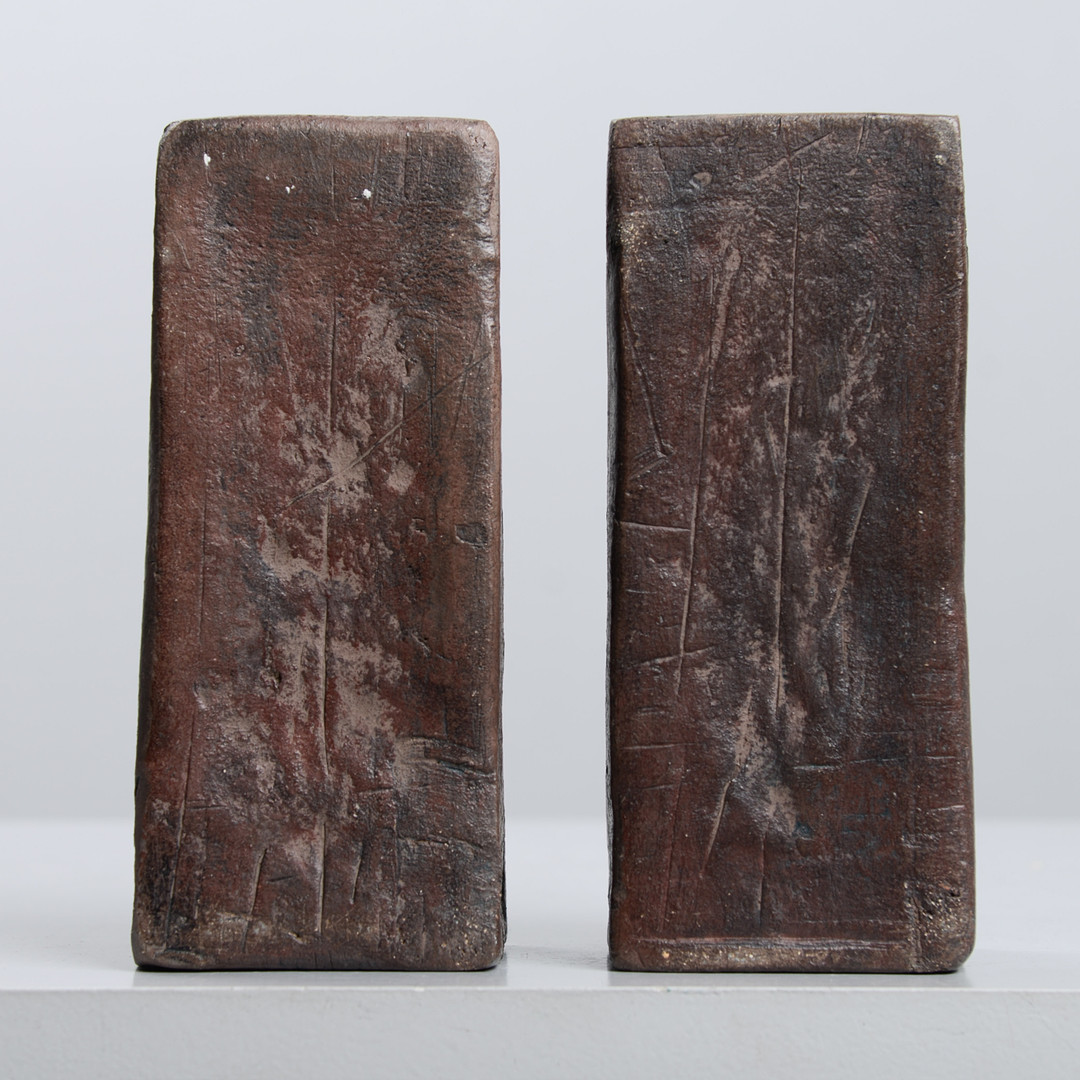 4973511. Et par bogstøtter, kunstmasse.