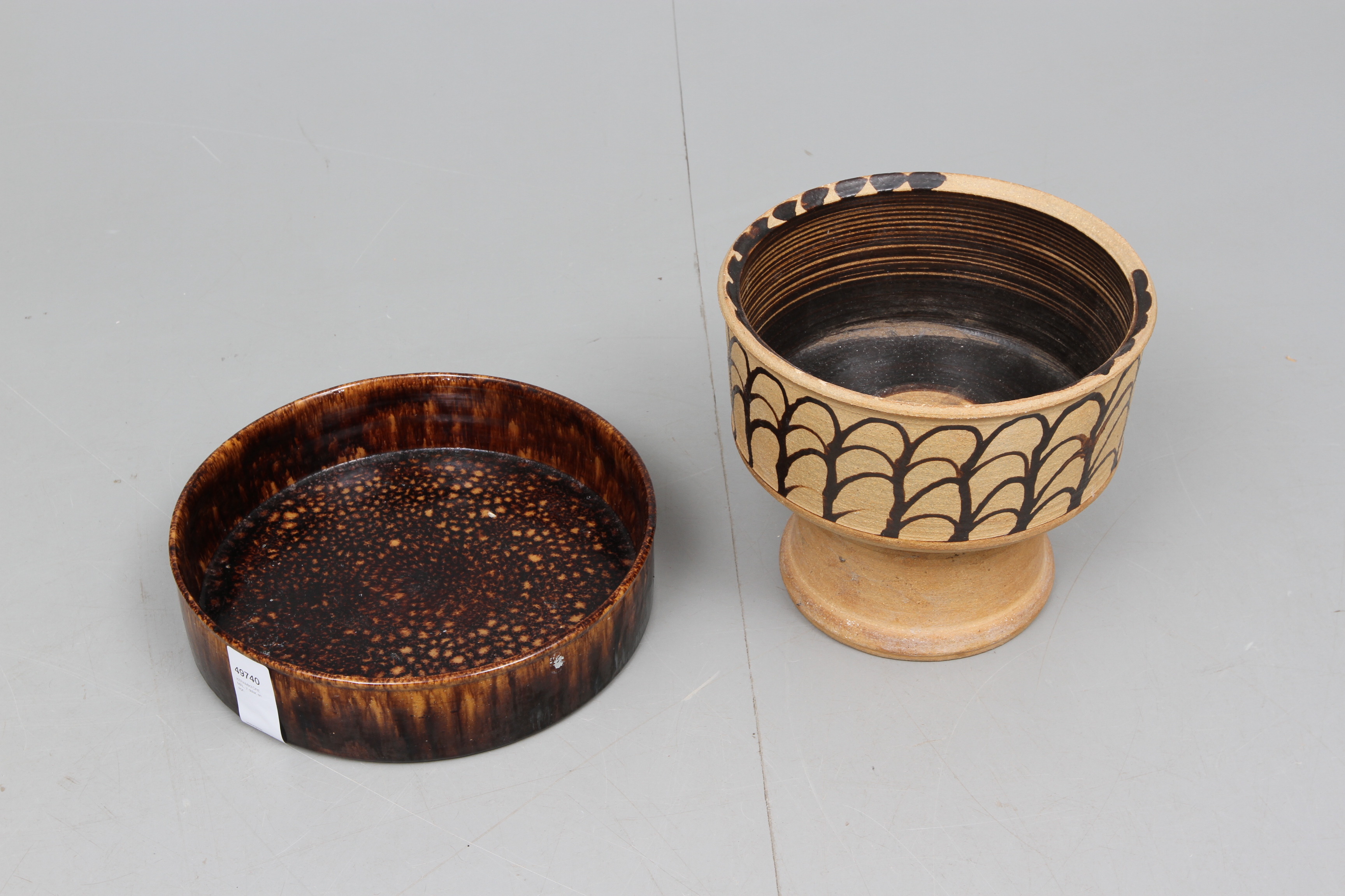 49740. KERAMISKE OBJEKTER, 2 dele, et skilt.