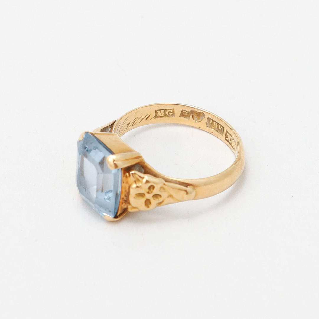 4974731. RING, 18k guld med blå sten, vægt ca 3,8 gram.