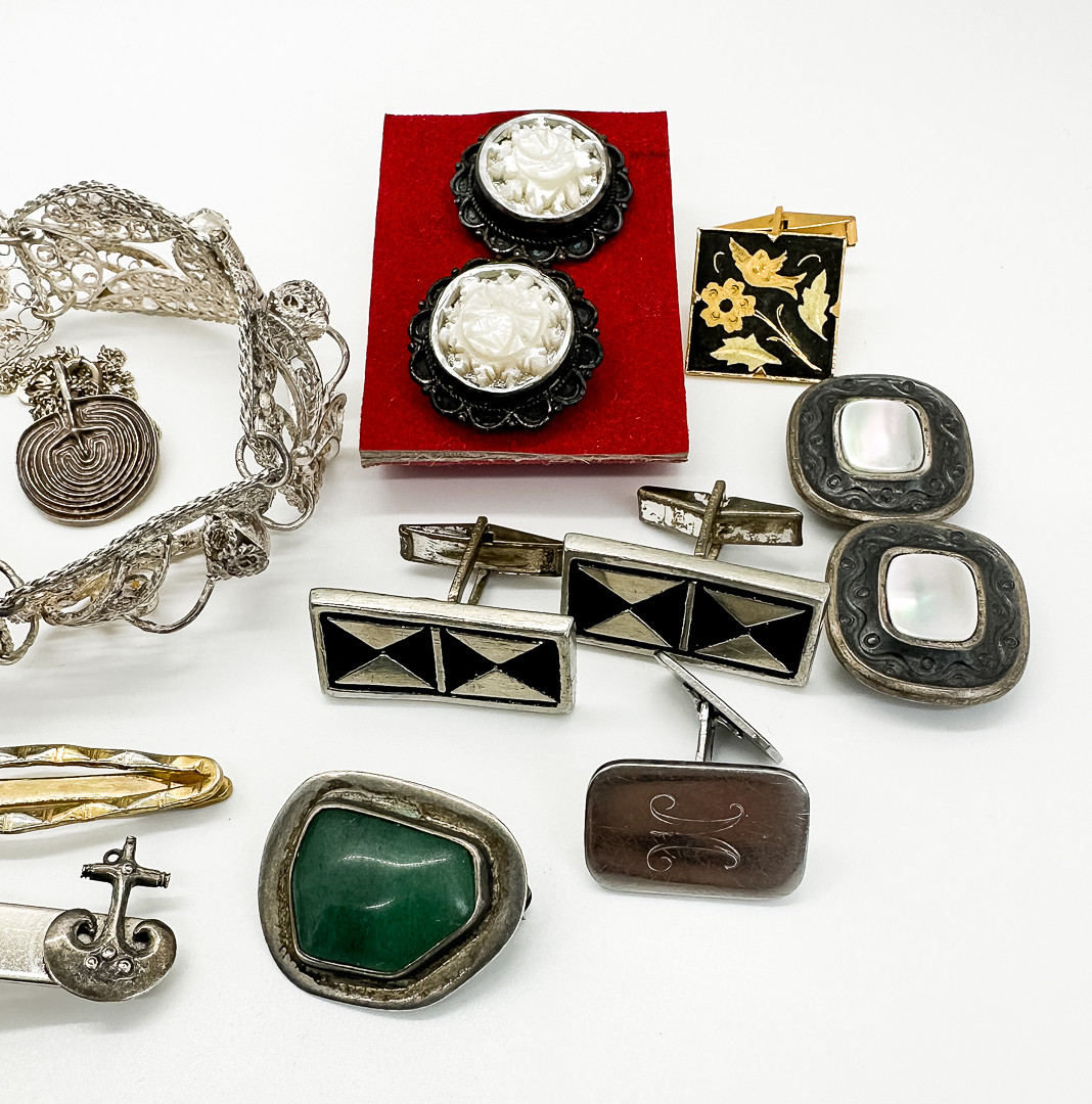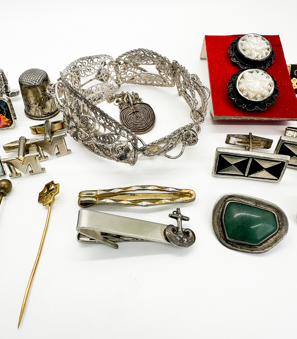 4975950. BIJOUTERIER, parti, delvis sølv.