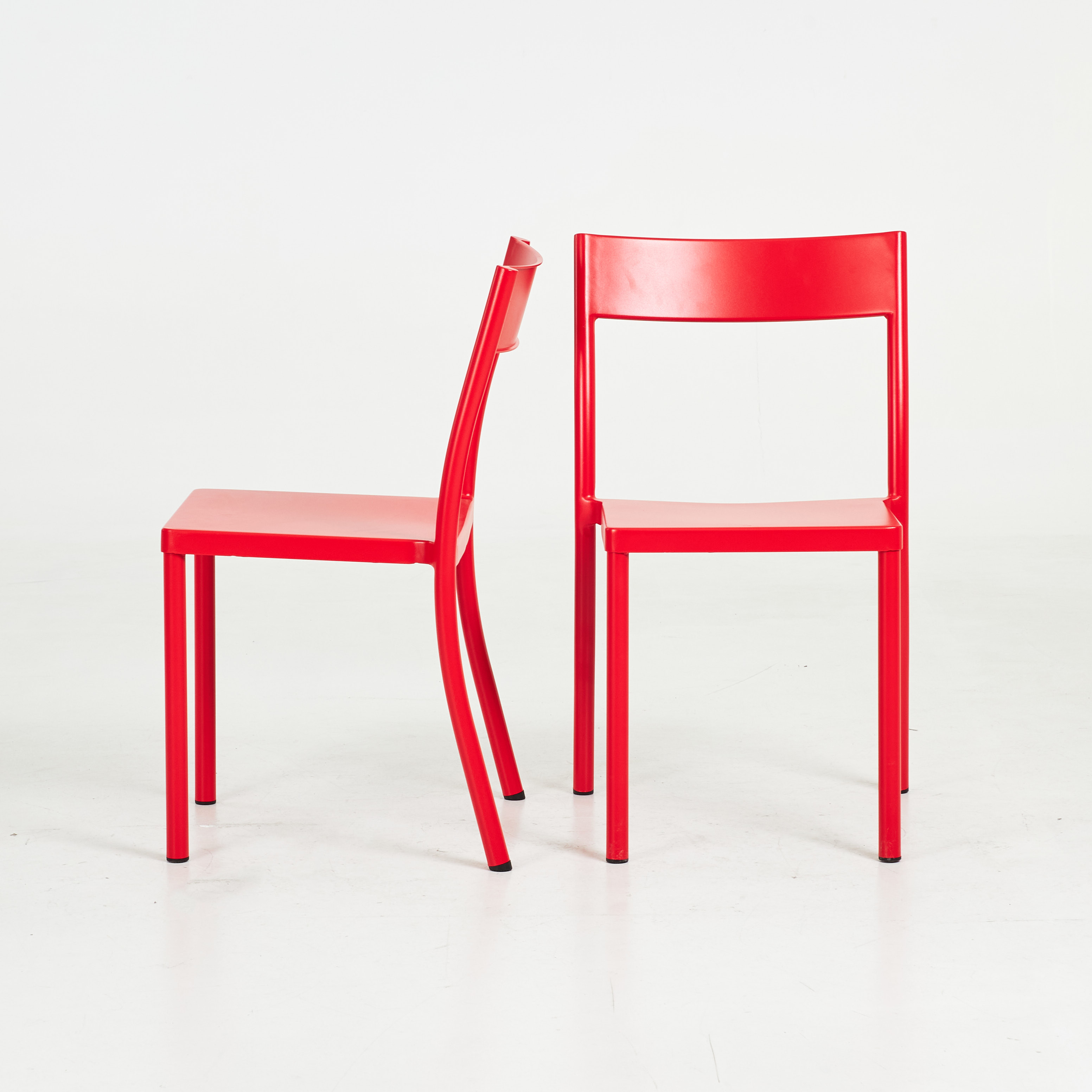 4976466. DAVID ERICSSON. Stole, et par, „A-stack“, Bebo Objects, moderne, aluminium, pulverlakeret i rødt, stabelbar.