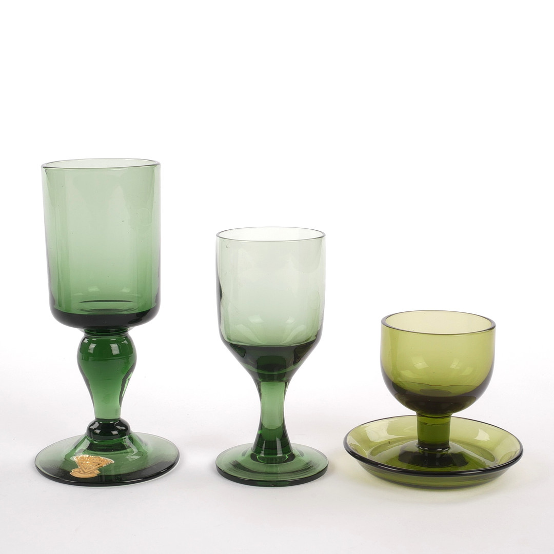 4977167. GLAS, 46 stk, grøn/mosgrønt glas, Gullaskruf.
