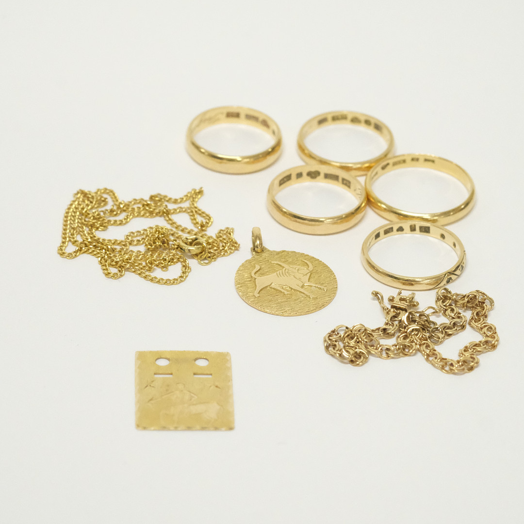 4977742. GULDDELE, 14- OG 18K GULD.