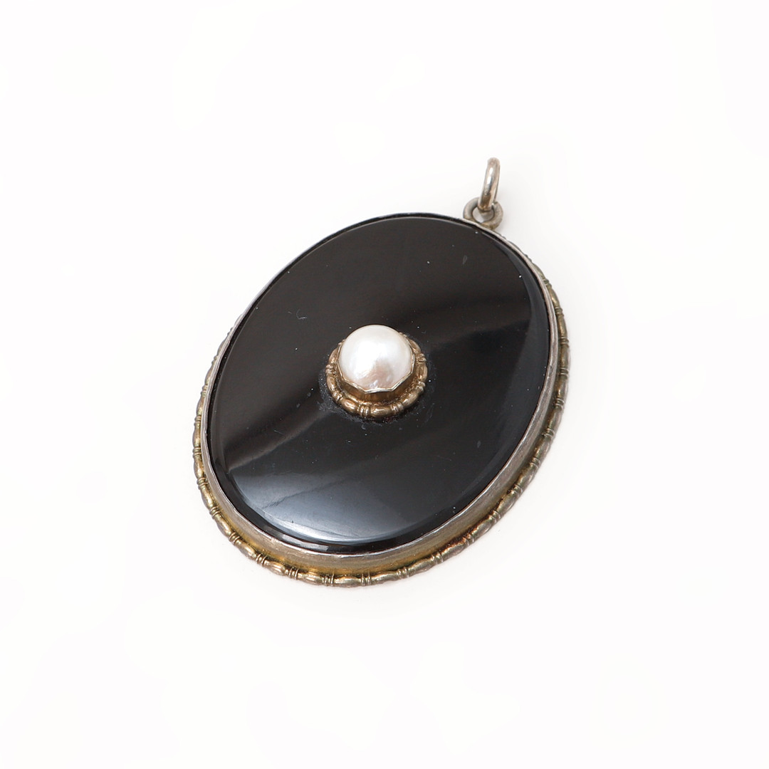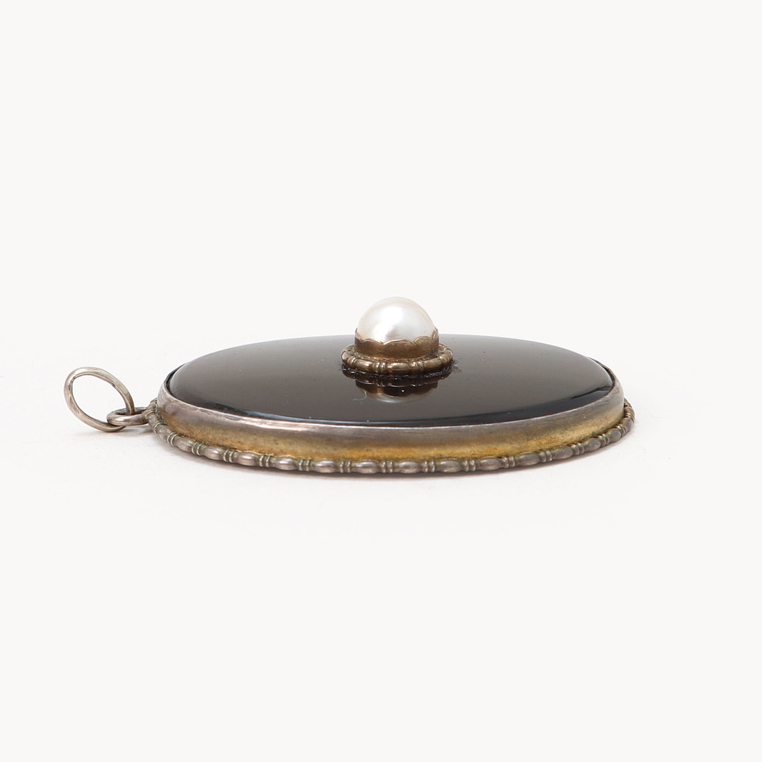 4977924. VEDHÆNG, sølv, onyx og perle.