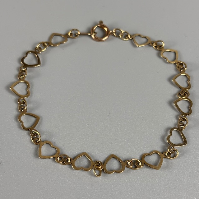 4978572. 9CT GULD HJERTE ARMBÅND.