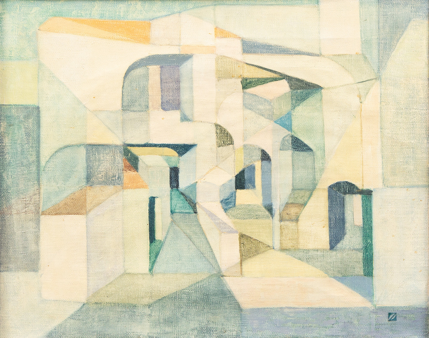 4978705. OIDENTIFIERAD KONSTNÄR. Komposition, olie på lærred, monogram signeret.