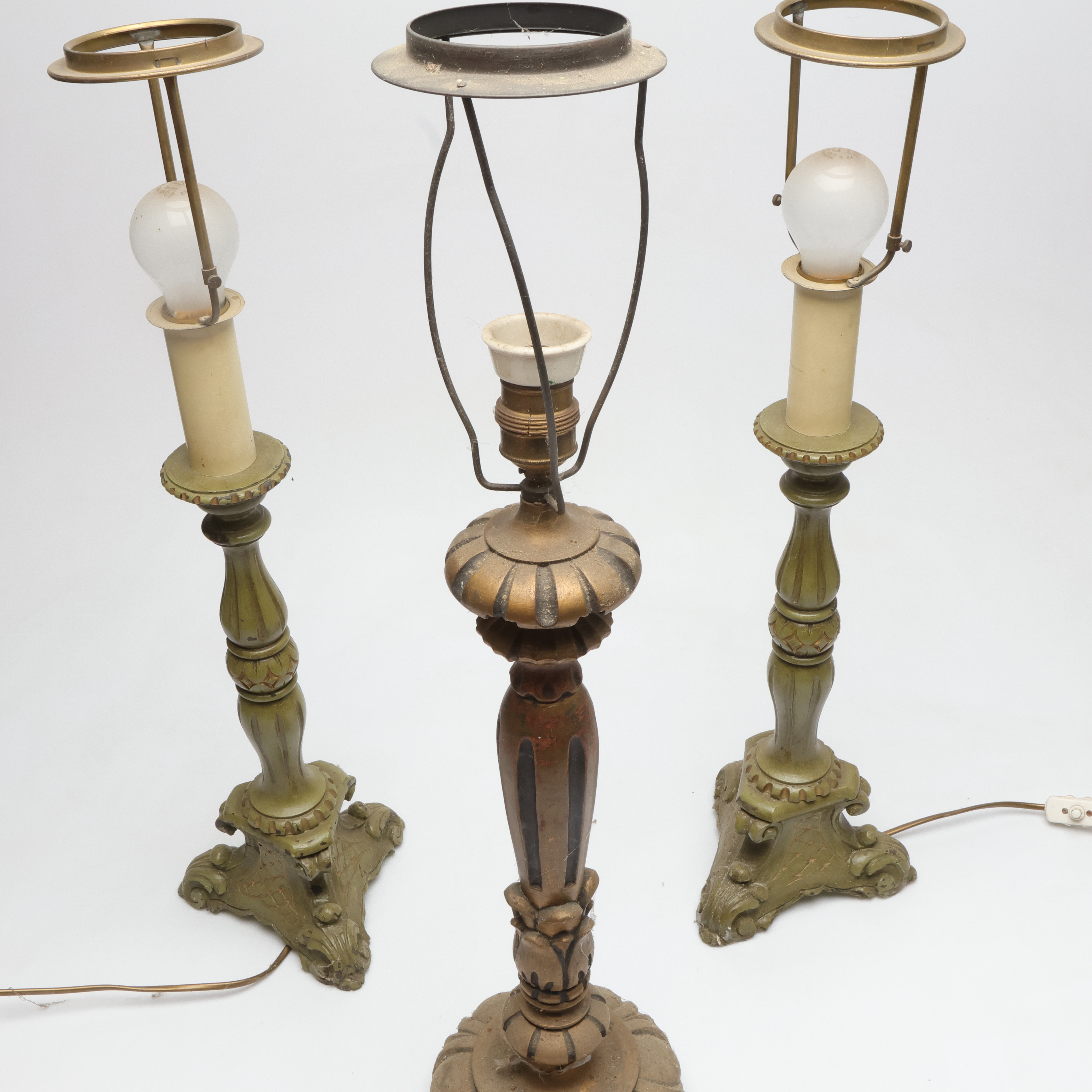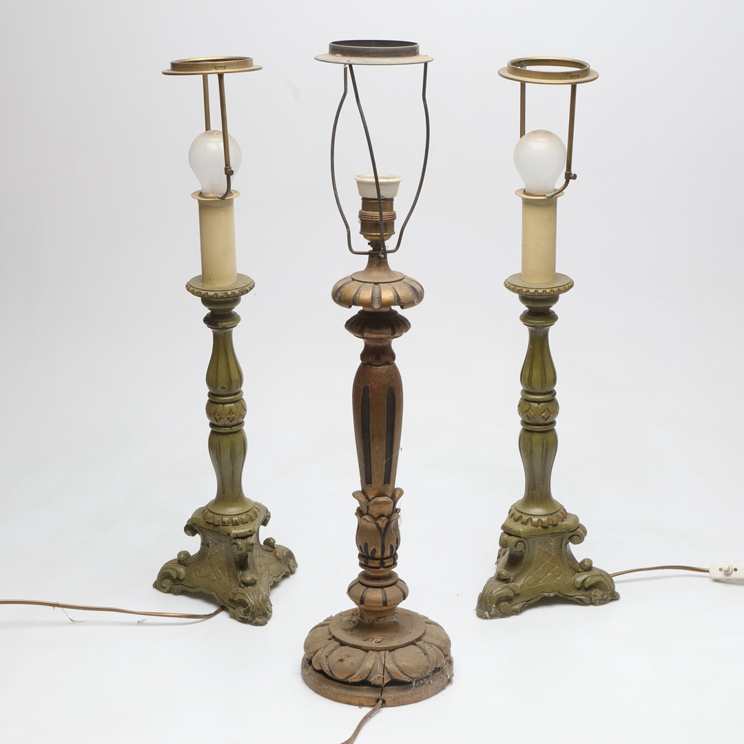4980698. Bordlamper, 2+1, malet træ, 20. årh.