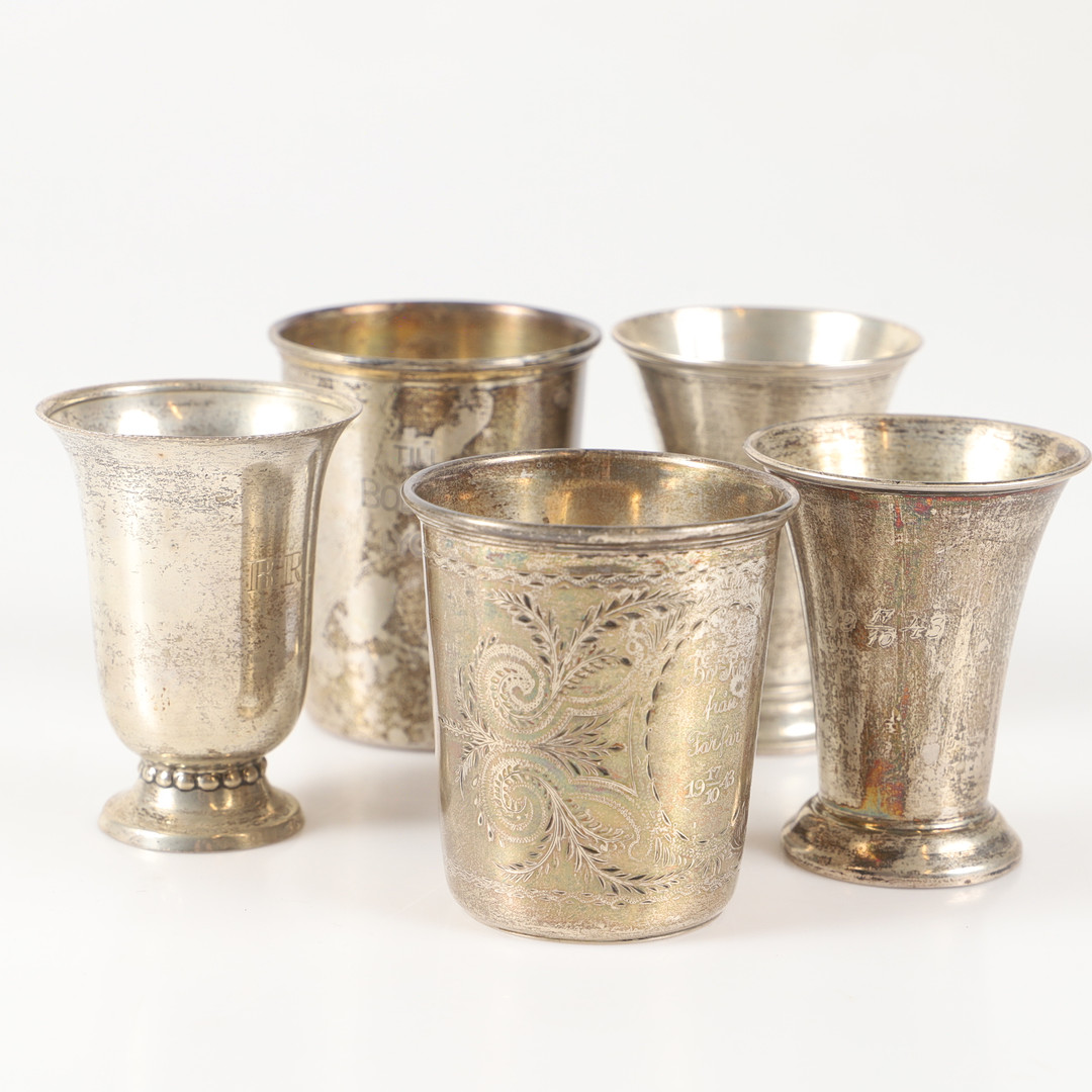 4983027. BÆGER OG TROFÆER, 5 stk, sølv.