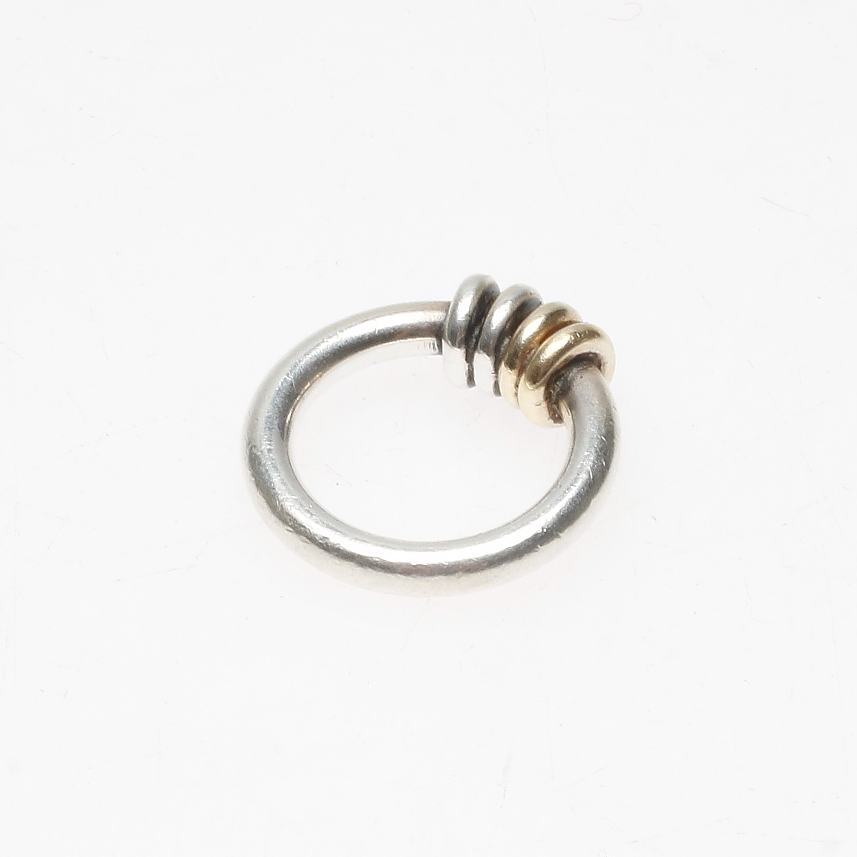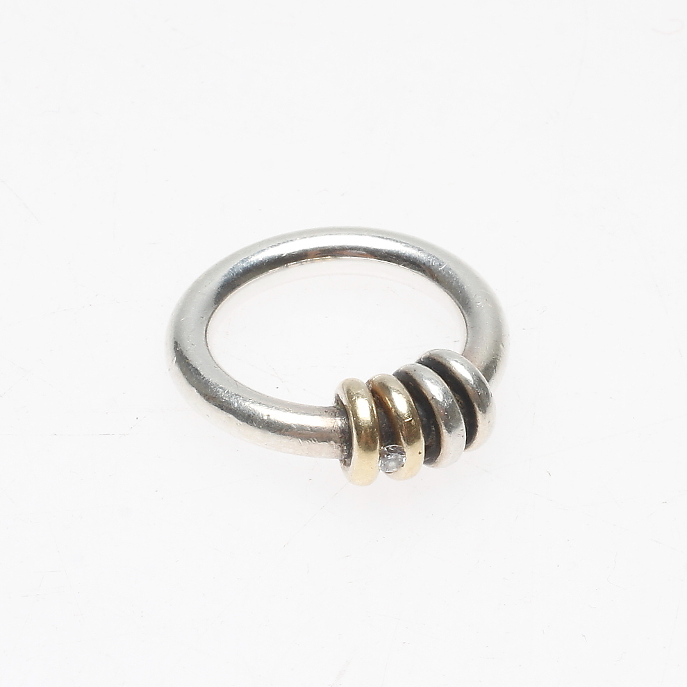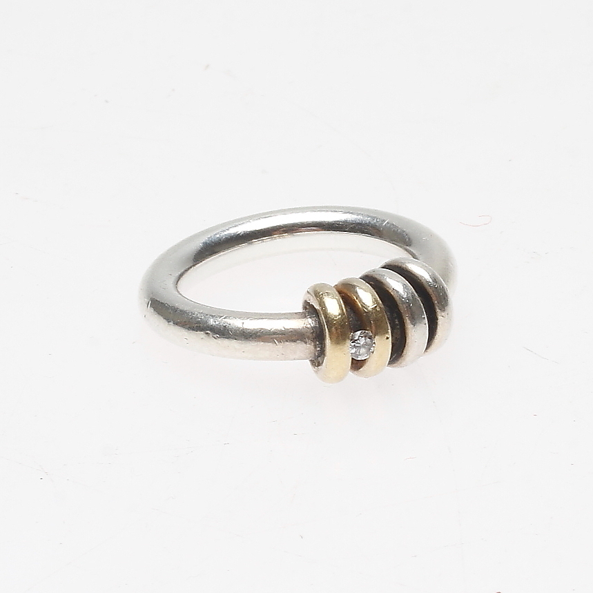 498382. RING, sølv og små diamant- og gulddetalje, Rauff.