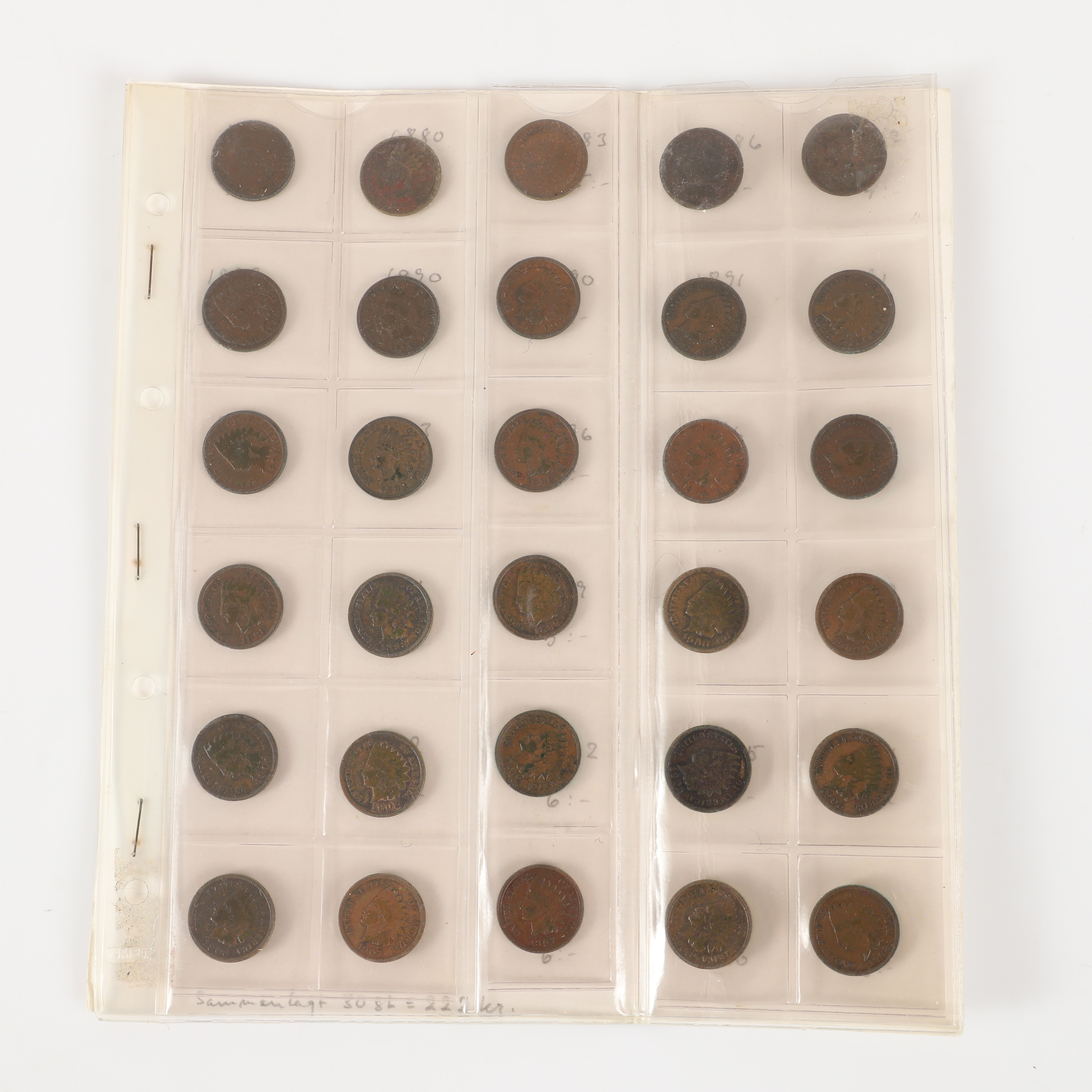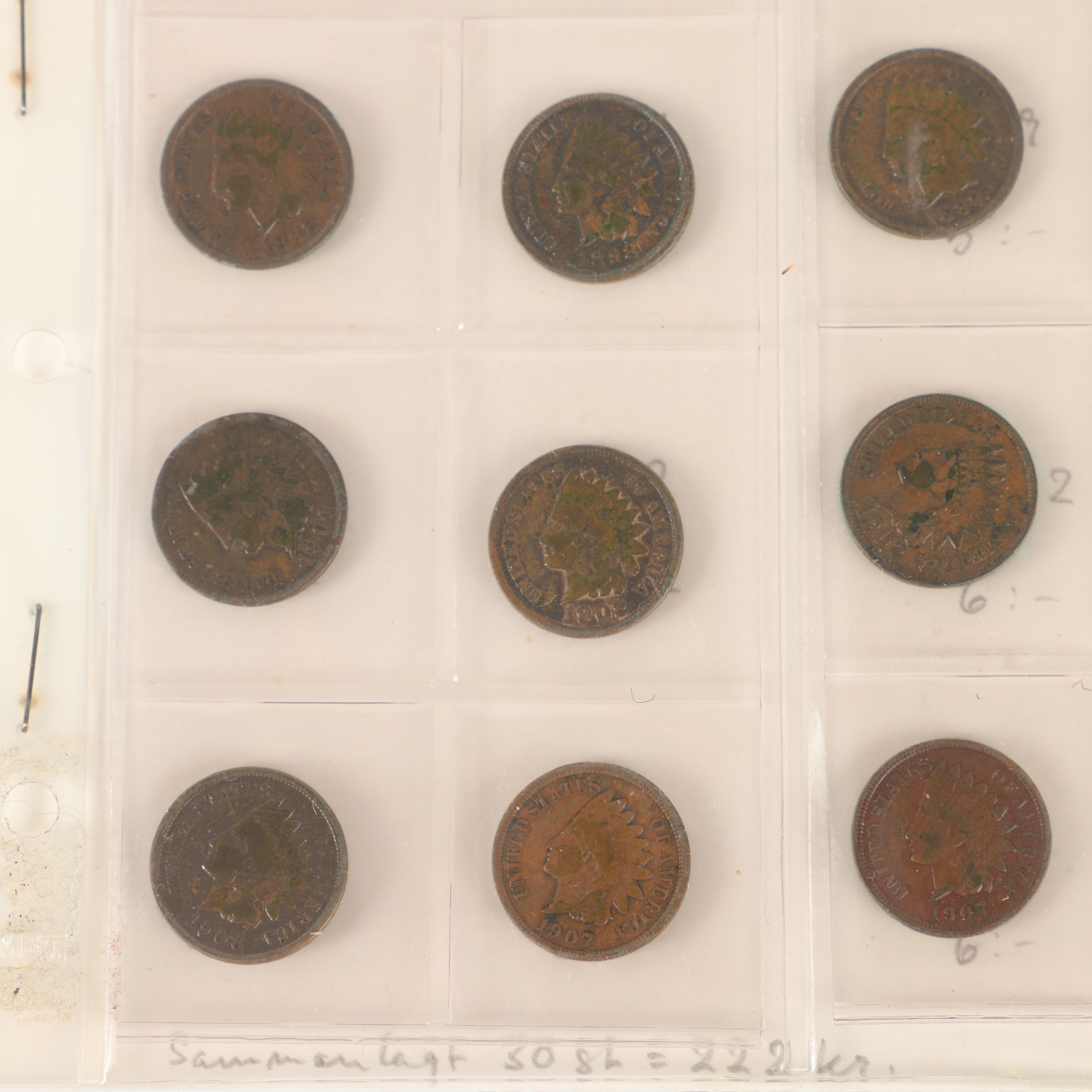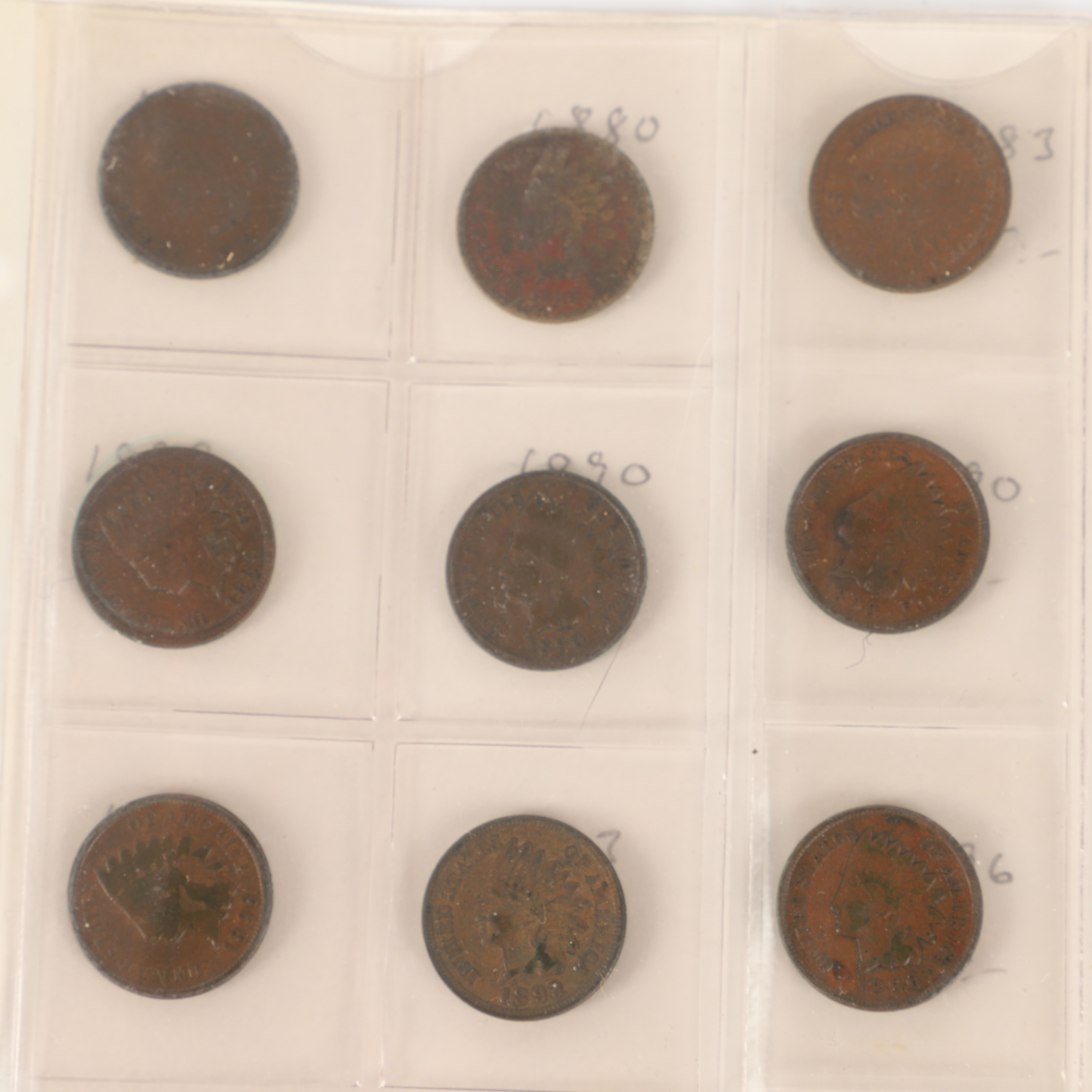 4985202. MØNTER, 30 stykker, 1 cent, kobber, USA, 1874-1908.